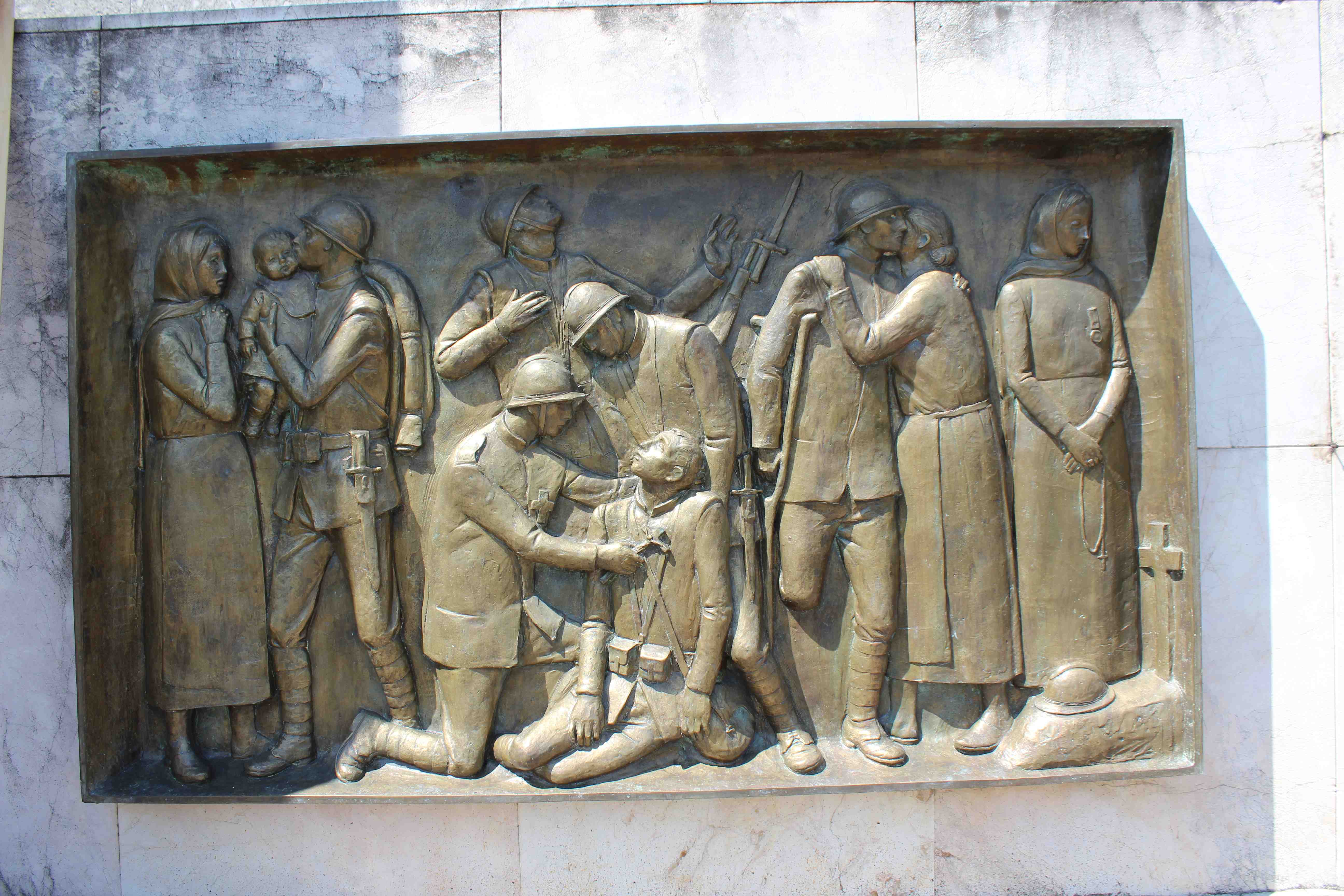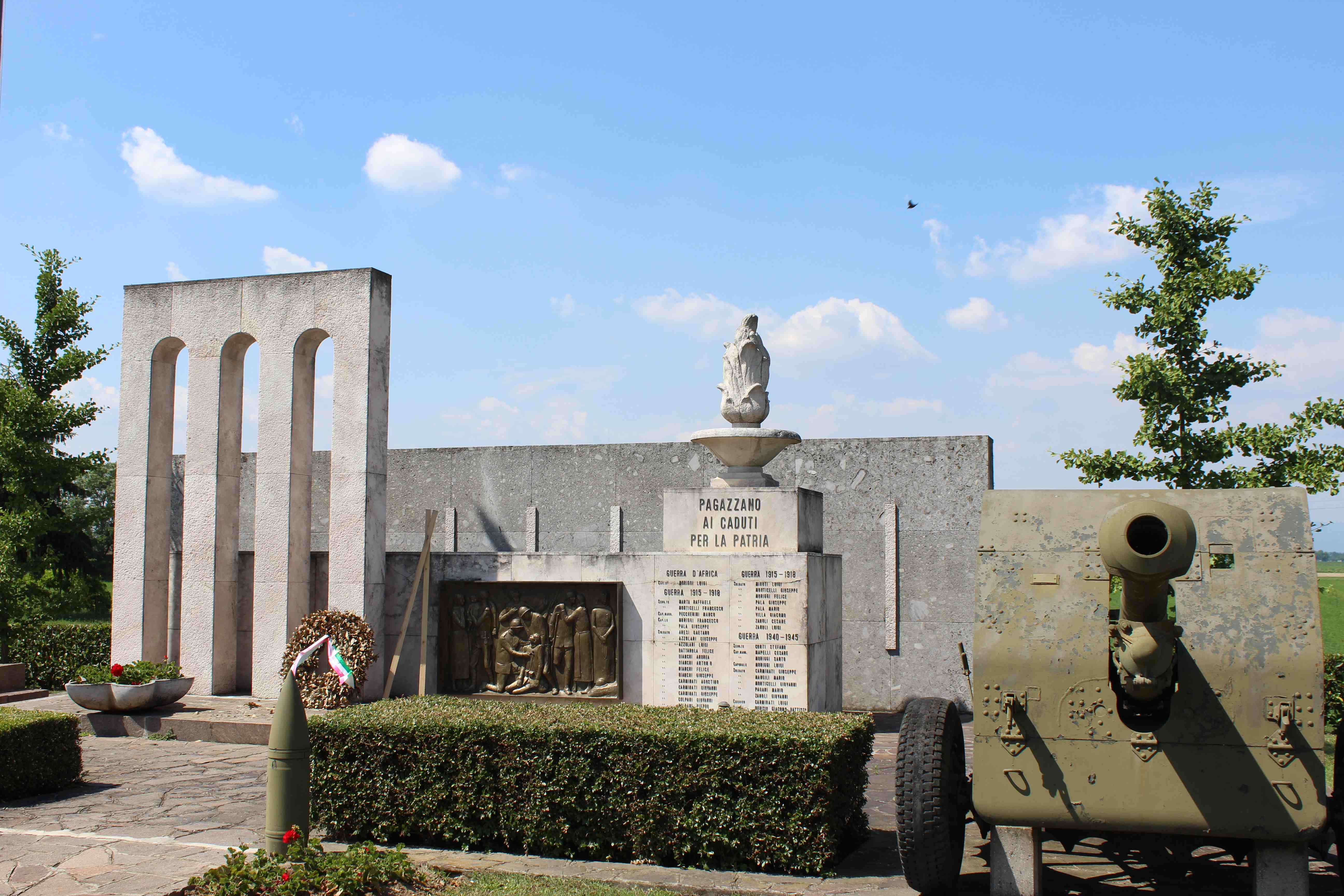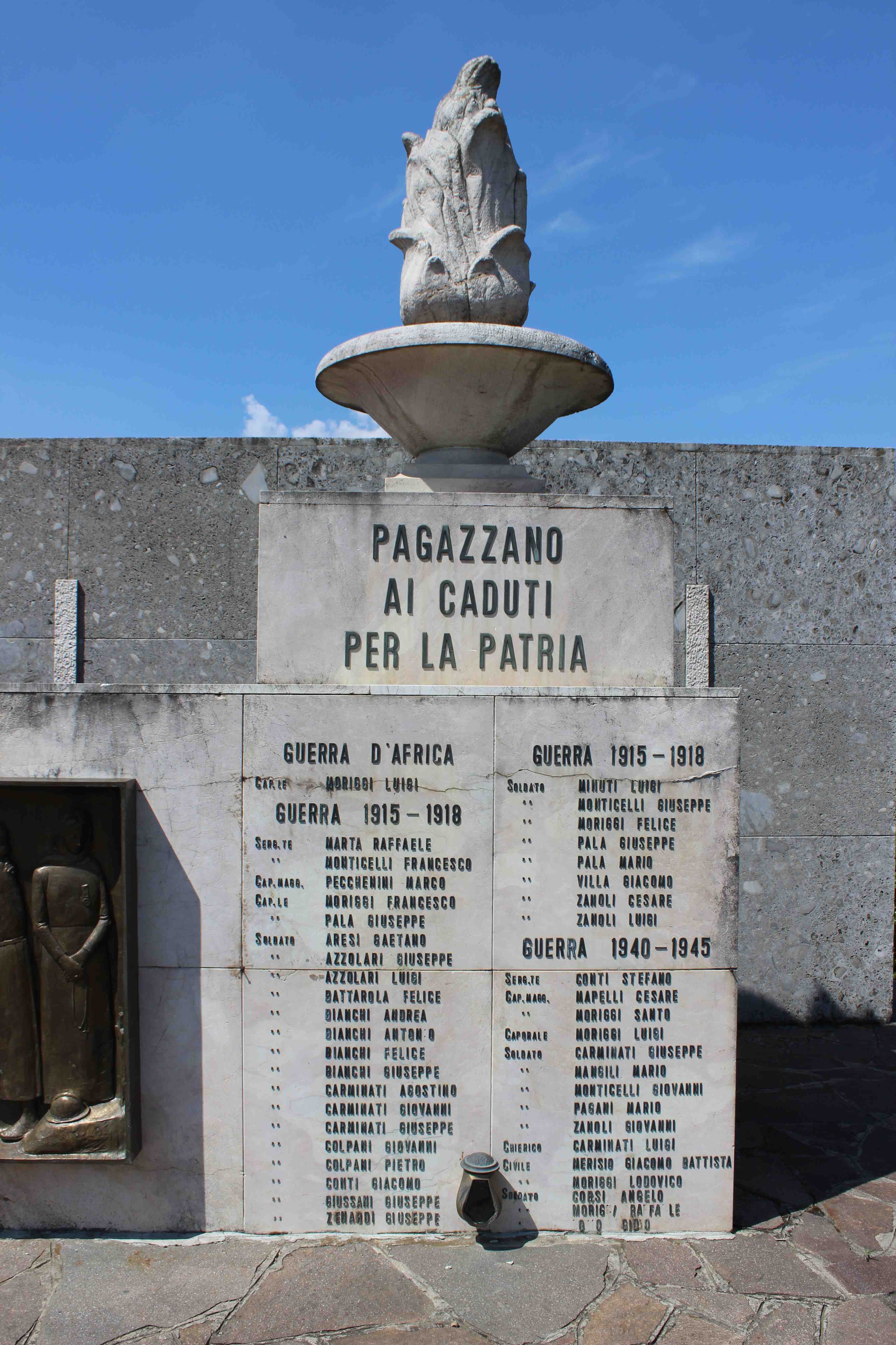 - ISCRIZIONI sulla fronte - PAGAZZANO / AI CADUTI / PER LA PATRIA - capitale - a caratteri applicati in bronzo -