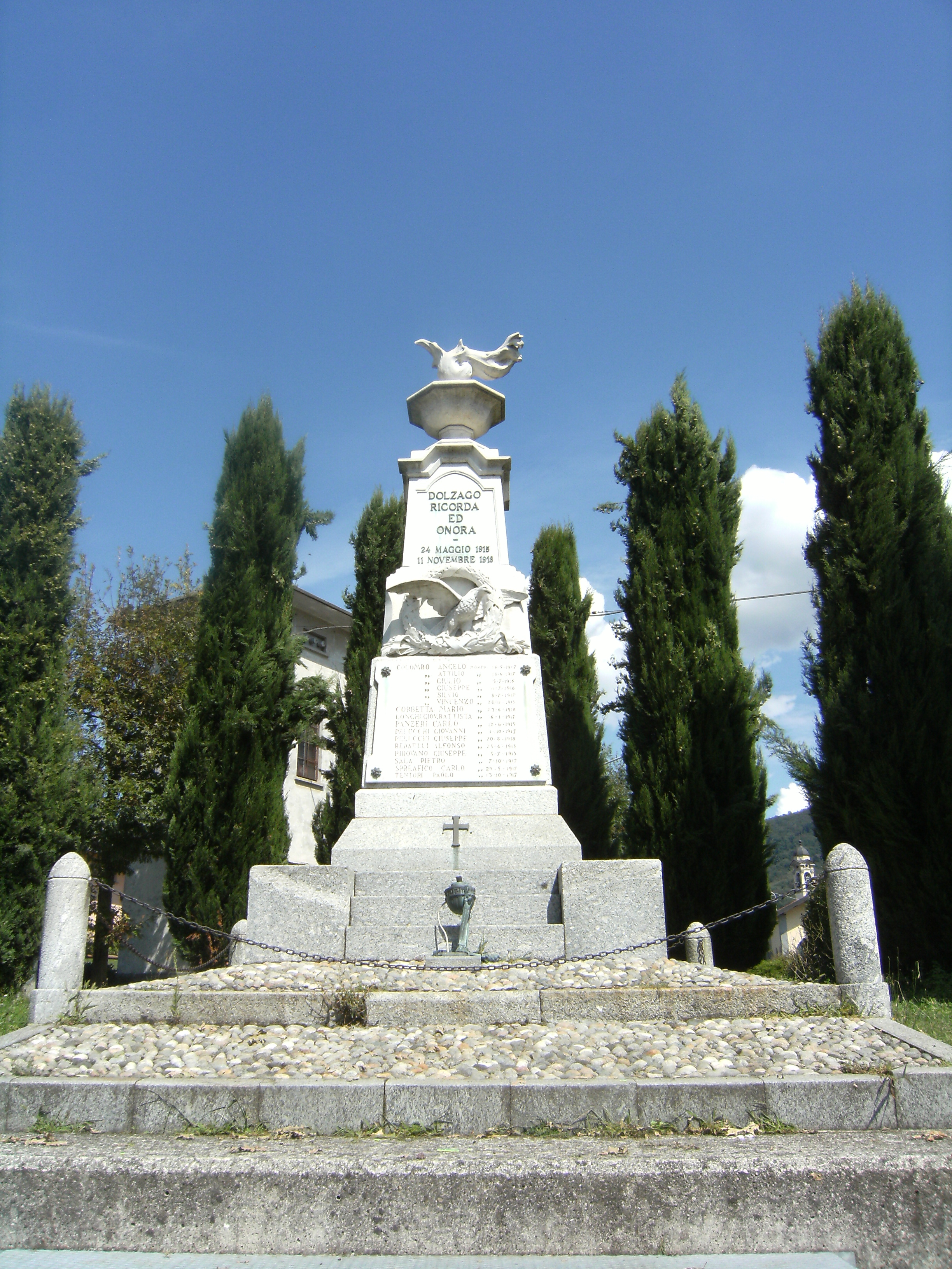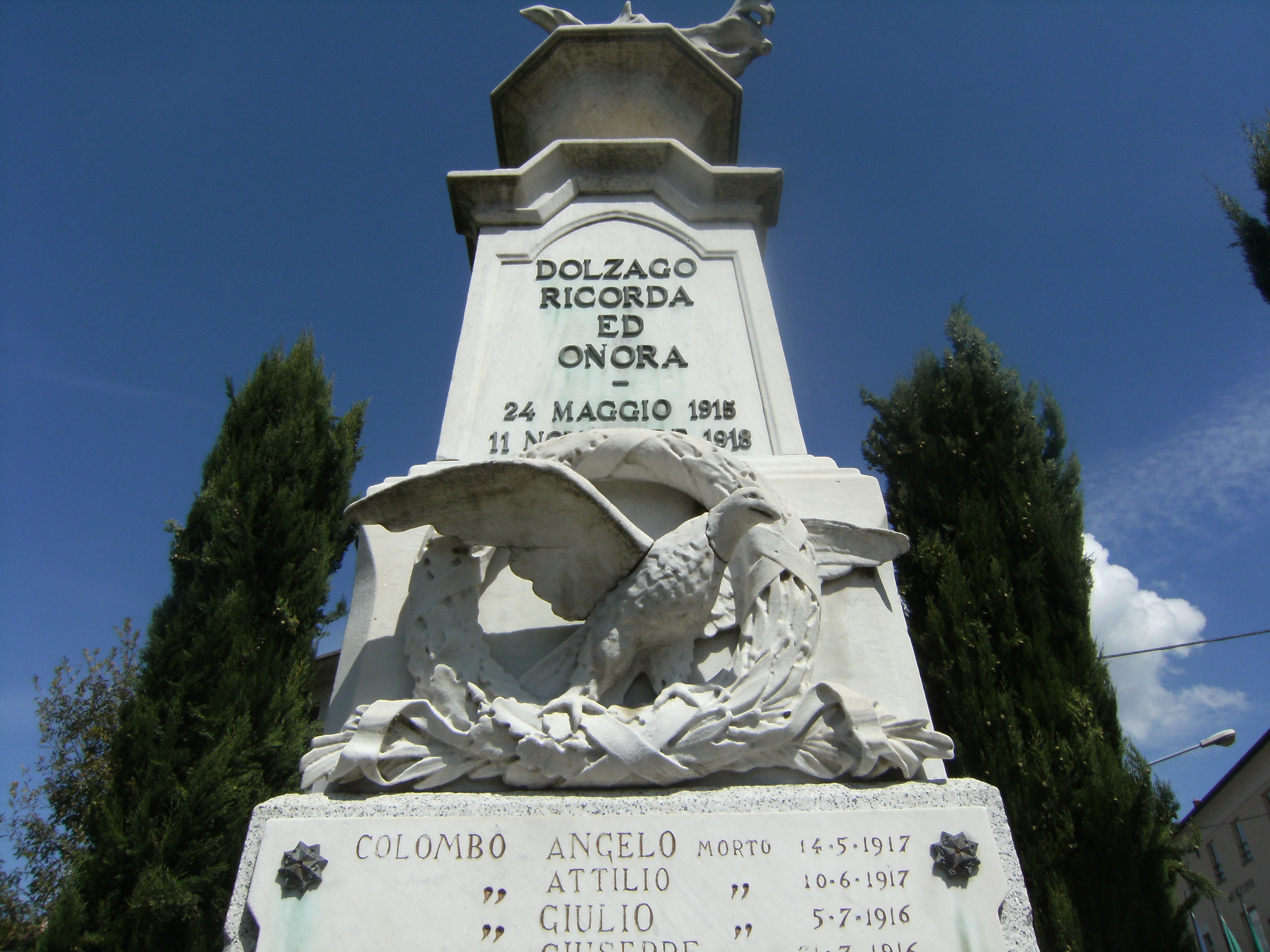 - ISCRIZIONI fronte in alto - DOLZAGO / RICORDA / ED / ONORA / - / 24 MAGGIO 1915 / 11 NOVEMBRE 1918 - capitale - a caratteri applicati in bronzo - italiano