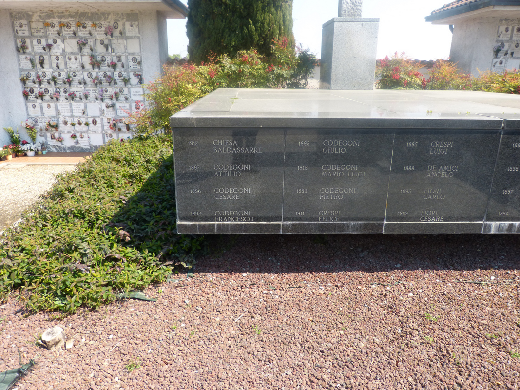 - ISCRIZIONI sul basamento, lato destro - 1893 PIETRA / FRANCESCO / 1891 RESPIZZI / CARLO / 1917 ROVELLASCHI / ANTONIO / [...] ROVELLASCHI / LUIGI / 1898 SACCHI / CARLO / 1891 SCRIVANTI / ANGELO / 1895 SPELTA / IGNAZIO / 1915 TURRI / FRANCESCO / 1898 SACCHI / CARLO / 1891 SCRIVANTI / ANGELO / 1895 SPELTA / IGNAZIO / 1915 TURRI / FRANCESCO / 1898 VIGONI / ALBERTO / 1896 VIGONI / CARLO / 1916 CAPRA / PIETRO / 1921 CORDARA / PIETRO / 1915 FERRE' / FRANCESCO / [...] / 1922 PASETTI / ATTILIO / 1918 SACCHI / SALVATORE - capitale - a incisione -