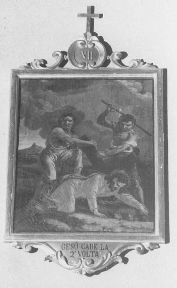 - ISCRIZIONI Sulla cornice, in basso - GESU' CADE LA SECONDA VOLTA - lettere capitali - a pennello -