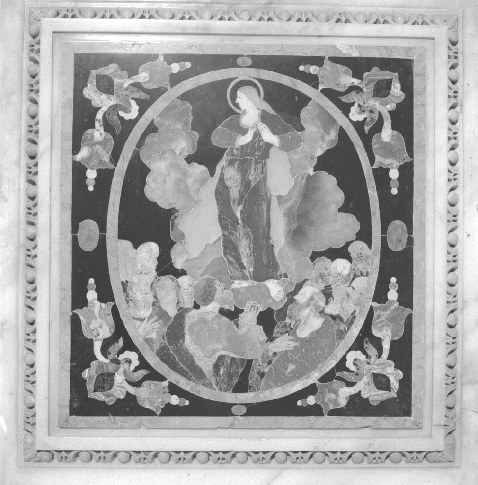 Altare alla romana in un unico blocco, su alto basamento su cui sono undici putti in marmo alternati da riquadri in pietre dure, a commesso policromi. Partendo dal fronte, a sinistra: Angelo Annunciante; Natività di Maria, Croce; Assunta, Maria Annunciata; fianco sinistro: vaso di fiori con uccelli, martiro dei SS. Felice e Fortunato, SS. Felice e Fortunato fustigati, vaso di fiori con uccelli, S. Fortunato; fianco destro: vaso di fiori