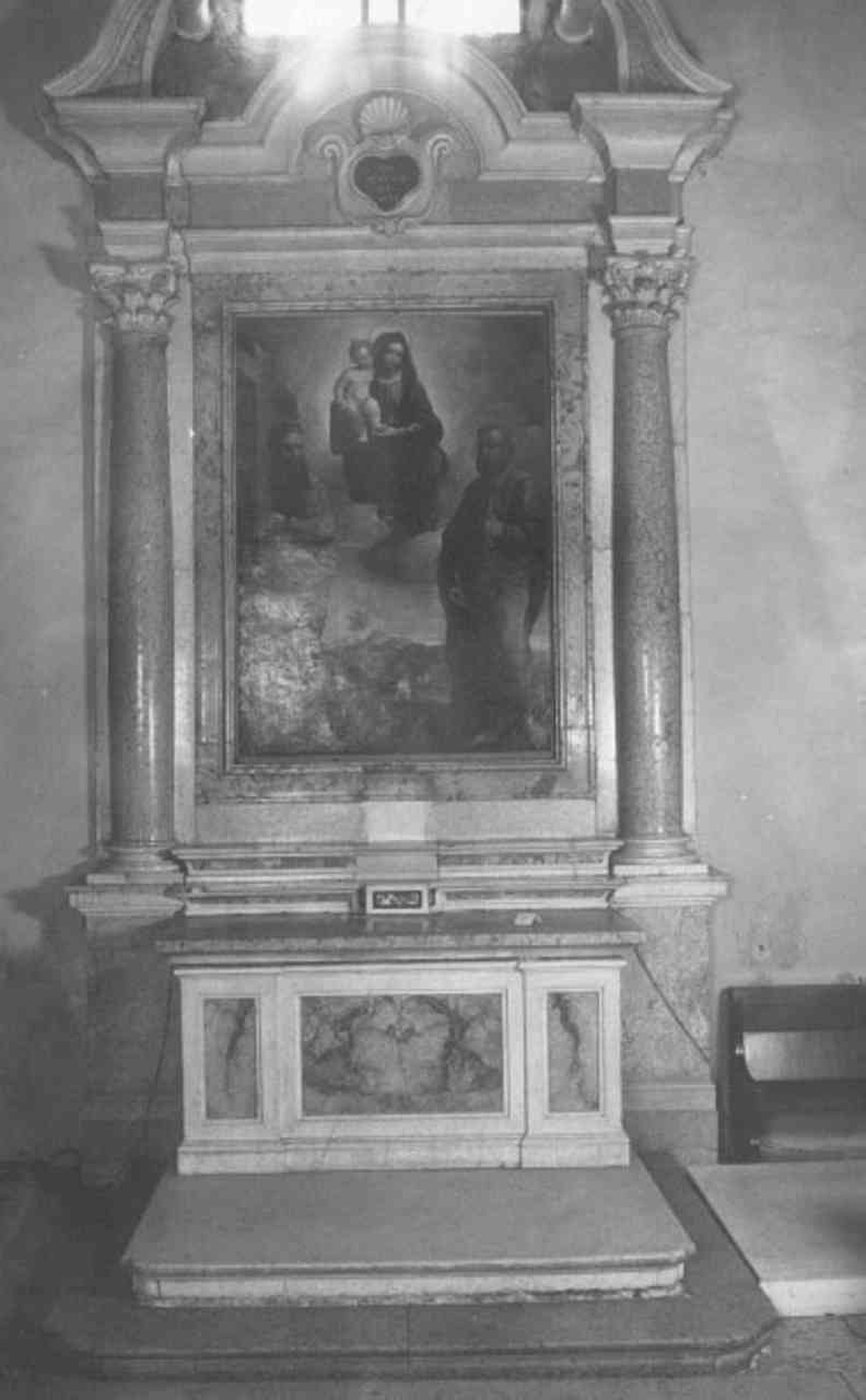 Fiancheggiato da colonne con capitelli corinzi, e' coronato da un timpano mistilineo spezzato in due volute in corrispondenza della finestra sovrastante. Al centro della trabeazione e' inserito un rilievo a decorazione curvilinea floreale lateralmente e con una conchiglia glorificante nella parte superiore. Il paliotto e' scandito in tre specchiature mediante piccole lesene
