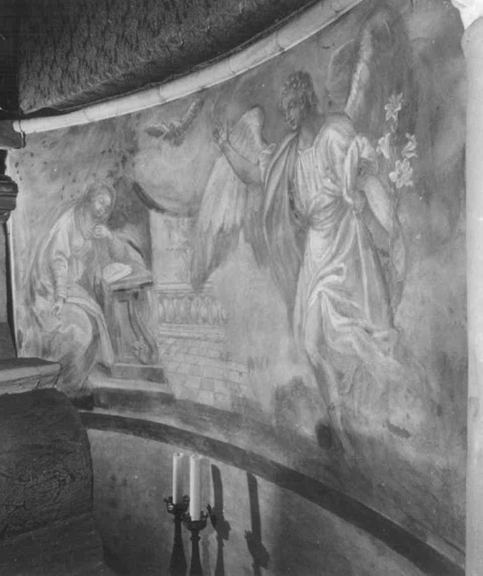 Soggetti sacri: Nuovo Testamento: vita della Madonna / Personaggi: Arcangelo Gabriele; Madonna Annunciata / Simboli: colomba dello spi- rito santo / Attributi: giglio / Architetture