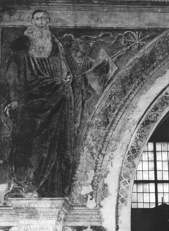 Personaggi: dottore della Chiesa (?). Abbigliamento: cappa scura. Figure: angelo. Decorazioni: fregi; cornici