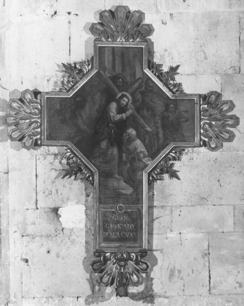 - ISCRIZIONI In basso - GESU' CARICATO DELLA CROCE - lettere capitali - a pennello - italiano volgare
