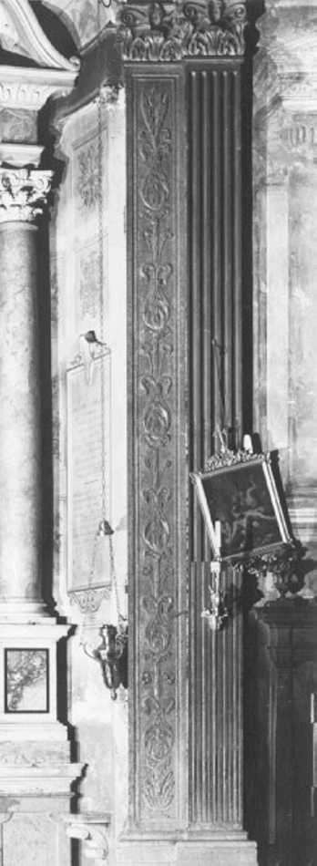 - NOTIZIE STORICO CRITICHE La cappella fu eretta e dotata nel 1465, come testimoniava l'antica iscrizione rimasta nel sacello fino al 1880, e poi sostituita con una moderna. La cornice, simile a quella del- le altre cappelle, mostra mescolanza di forme gotiche e ri- nascimentali. I rilievi sono databili intorno all'ottavo decennio. La decorazione scultorea presenta caratteri piu' classicheggianti, aggiornati sulla cultura donatelliana e vicini ai modi di Bernardino Panteo; si tratta di sculture piu' moderne di quelle dell'altra e coeva cappella Cartolari