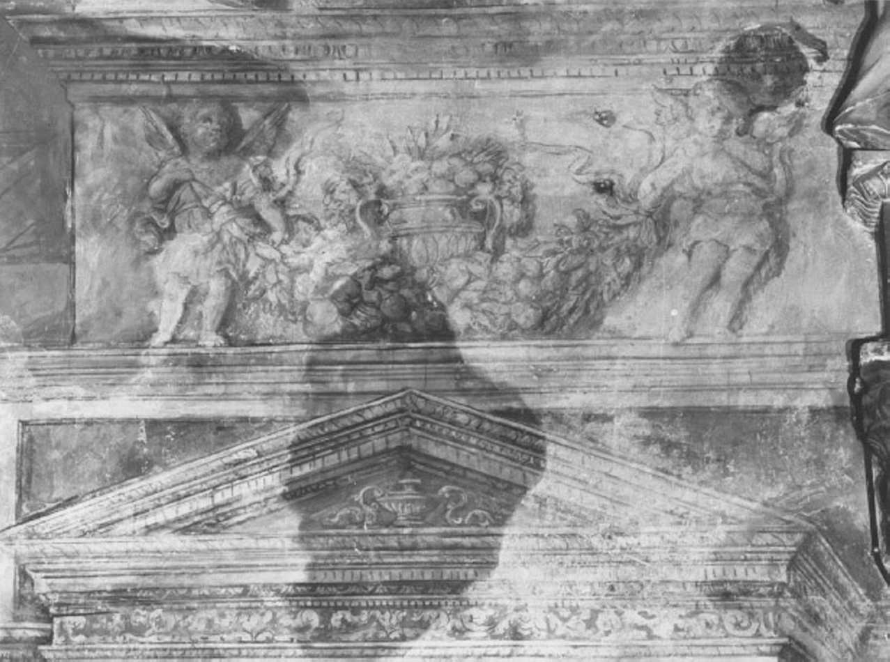 - NOTIZIE STORICO CRITICHE Gli affreschi risultano in rapporto con la decorazione sculturea della cappella. Le pareti della cattedrale furono imbiancate nel 1698 e nel 1755. Tra il 1868 e il 1870 lo scialbo fu rimosso, in modo troppo radica- le dal pittore P. Nanin. L'opera e' attribuibile a un pittore veneto di influsso mantegnesco. Esiste una forte consonanza stilistica tra gli affreschi delle terza e della prima cappella a sinistra, entrambe della famiglia Cartolari. Questo ciclo venne attribuito da Belviglieri e Spaventi direttamente al Mantegna