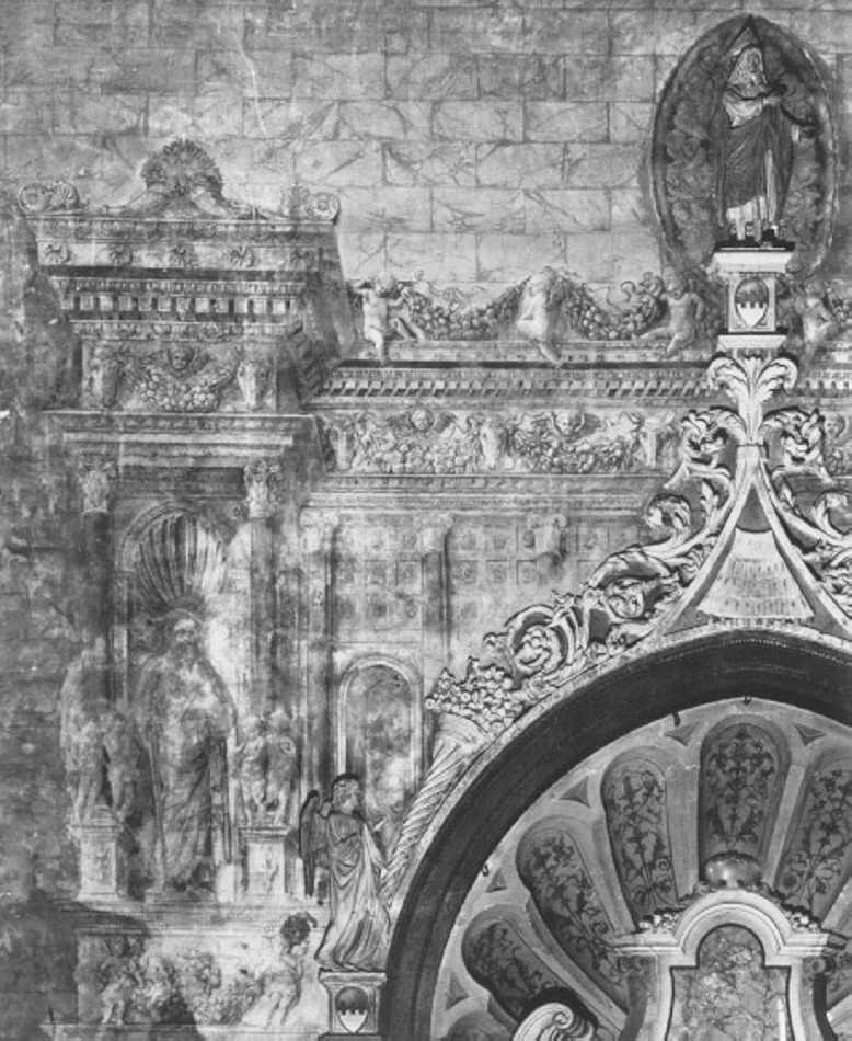 - NOTIZIE STORICO CRITICHE Gli affreschi risultano in rapporto con la decorazione sculturea della cappella. Le pareti della cattedrale furono imbiancate nel 1698 e nel 1755. Tra il 1868 e il 1870 lo scialbo fu rimosso, in modo troppo radica- le dal pittore P. Nanin. L'opera e' attribuibile a un pittore veneto di influsso mantegnesco. Esiste una forte consonanza stilistica tra gli affreschi delle terza e della prima cappella a sinistra, entrambe della famiglia Cartolari. Questo ciclo venne attribuito da Belviglieri e Spaventi direttamente al Mantegna
