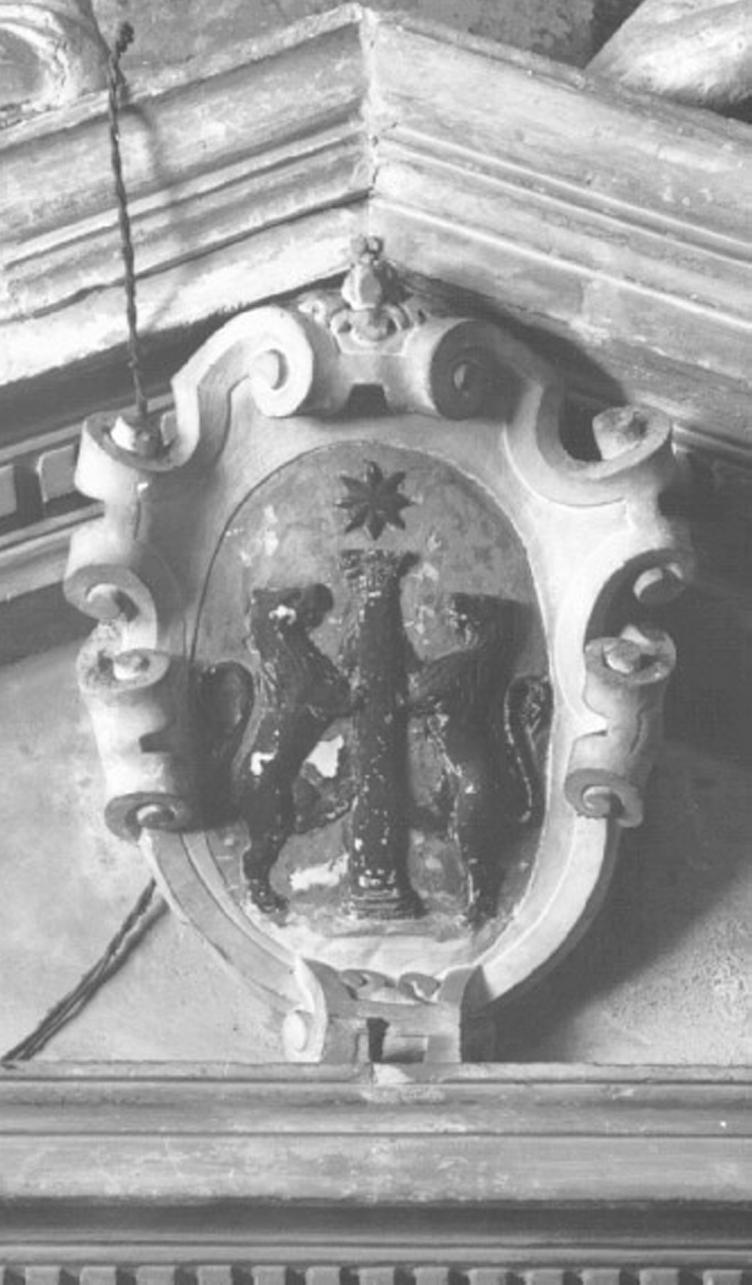 - STEMMI gentilizio - Stemma - Fortezza - D'azzurro, alla colonna accostata da due leoni affrontat controrampanti, e sormontata da una stella di otto raggi