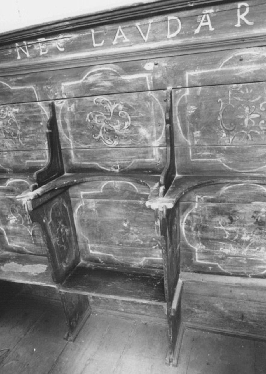 - ISCRIZIONI Lungo tutta la riquadratura della parte superiore - TANTUM ERGO SACRAM E [...] NEREMUR CERNUI LAUDA SION SALVATORE LAUDA DUCEM E PASTOREM IN HIMNIS E CANTICIS QUANTUM POTES TANTU AUDE QUIA MAIOR OMNI LAUDE NEC LAUDARE SUFFICIS - lettere capitali - a pennello -