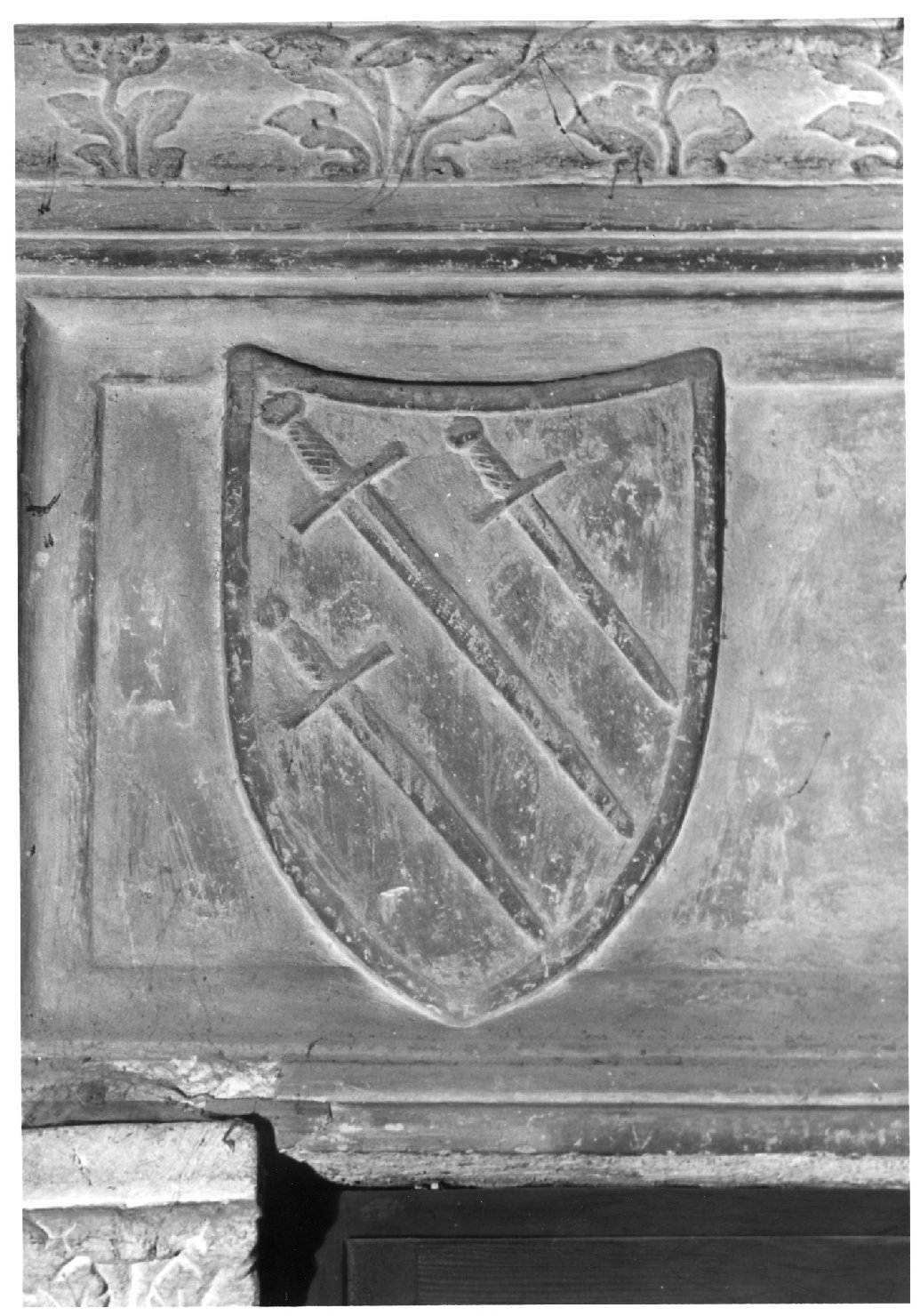 Sarcofago decorato sul fronte con una croce equilatera entro un compasso a rilievo, tra due stemmi Sarego. La gola superiore è fregiata da motivi decorativi vegetali, prerogativa anche delle mensole d'appoggio in basso