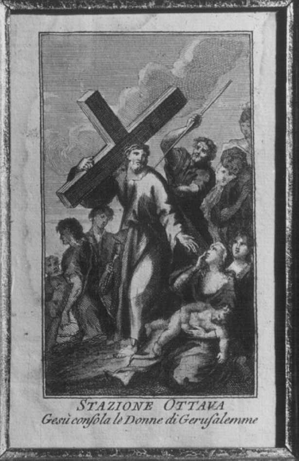 - ISCRIZIONI Lungo il margine inferiore - STAZIONE OTTAVA / GESU' CONSOLA LE DONNE DI GERUSALEMME - lettere capitali - italiano