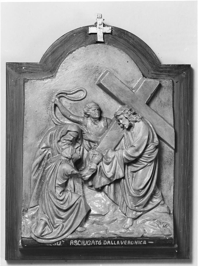 Personaggi: Cristo;Santa Veronica. Figure: figure maschili. Oggetti: croce; frusta;sudario