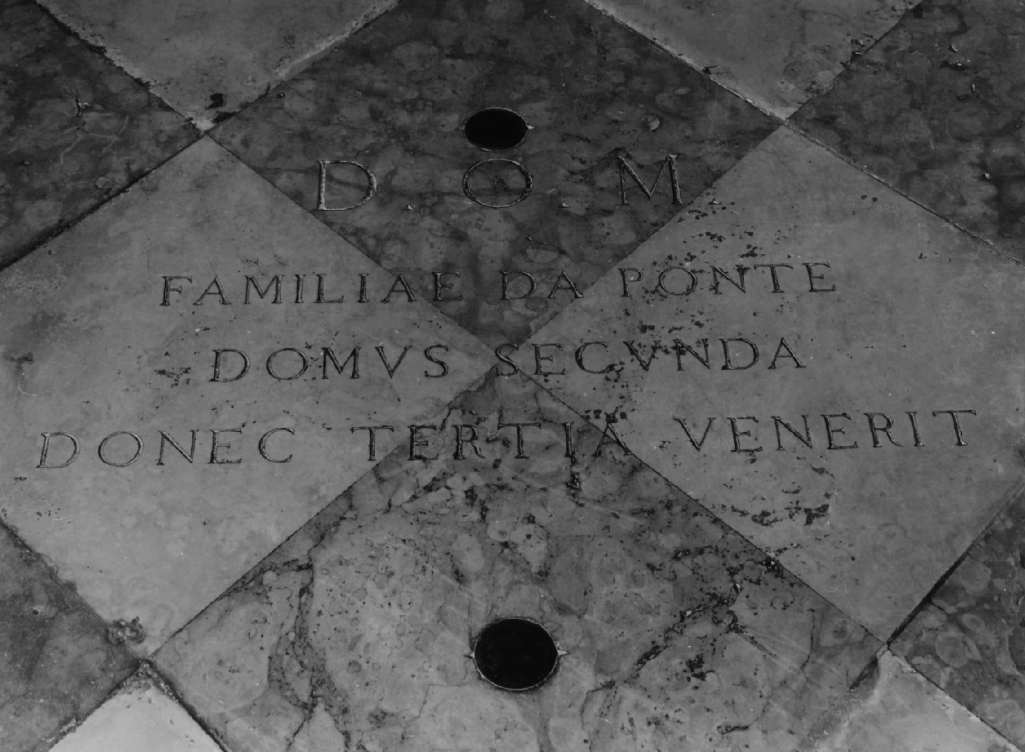 - ISCRIZIONI D.O.M. FAMILIAE DA PONTE / DOMUS SECUNDA / DON EC TERTIA VENERIT - lettere capitali - a incisione -