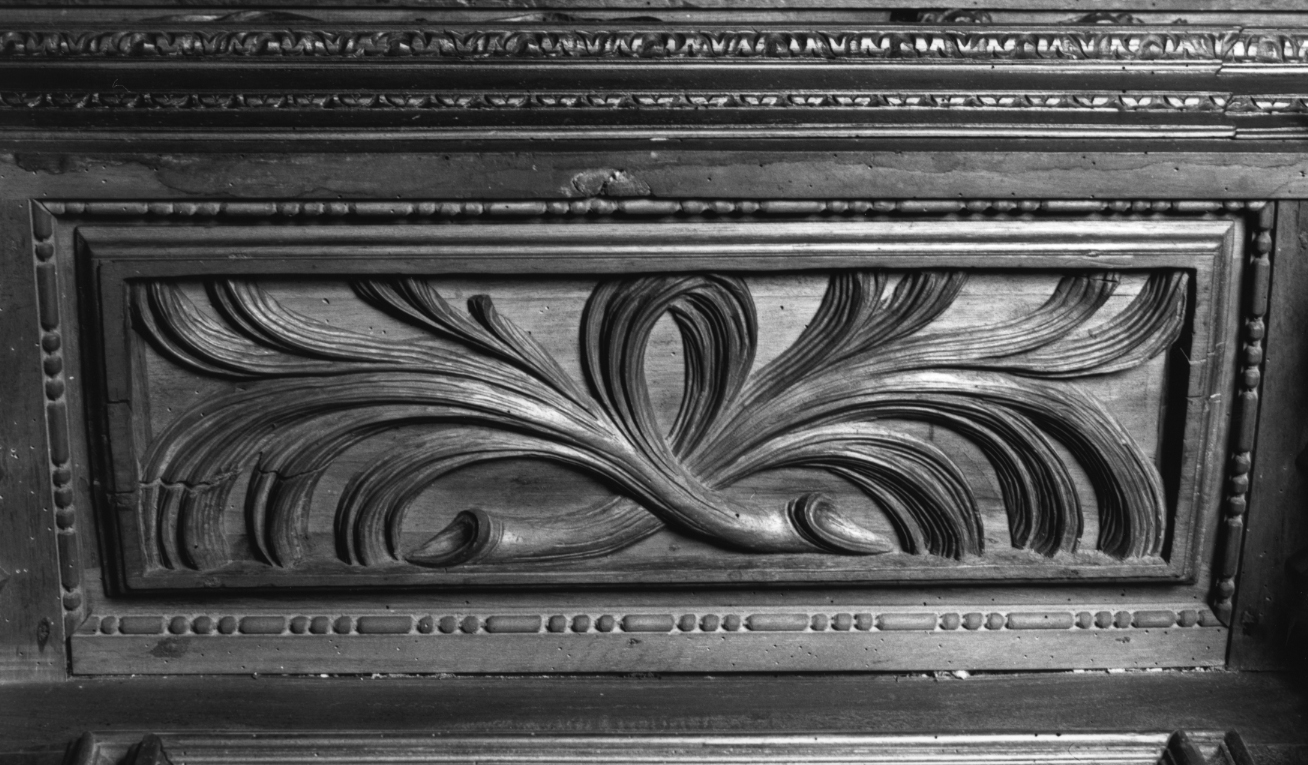 Due rami, dopo essersi intersecati al centro, generano numerose foglie lunghe, sottili e striate che, curvandosi simmetricamente, raggiungono le estremità del pannello