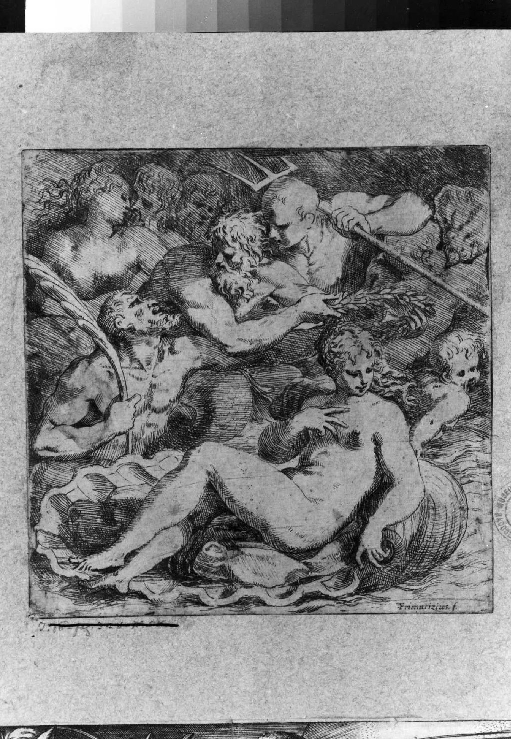 Divinità: Venere; Nettuno. Divinità minori: tritoni. Figure maschili: dei. Figure femminili. Oggetti: corona. Attributi: (Nettuno) tridente