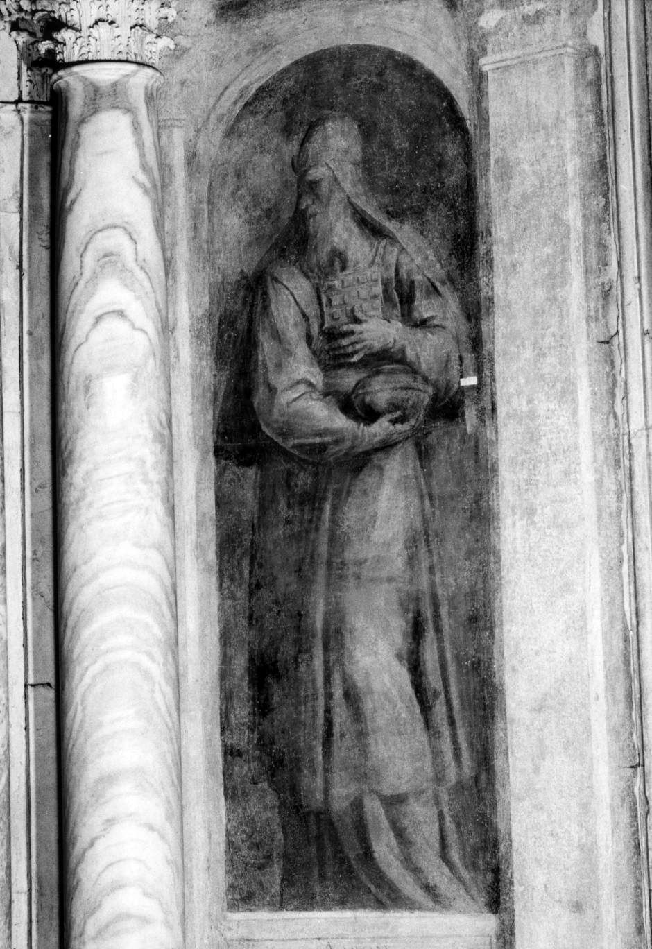 PERSONAGGIO MASCHILE A FIGURA ERETTA ENTRO UNA NICCHIA DIPINTA. VESTE LUNGA. RECA NELLA MANO DESTRA LA LAMPADA, IN QUELLA SINISTRA L'EFOD. CAPO COPERTO