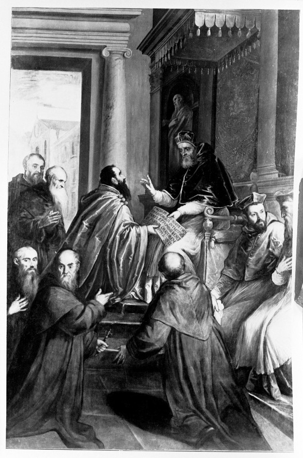 Paolo IV consegna il breve della fondazione dell' ordine dei Crociferi