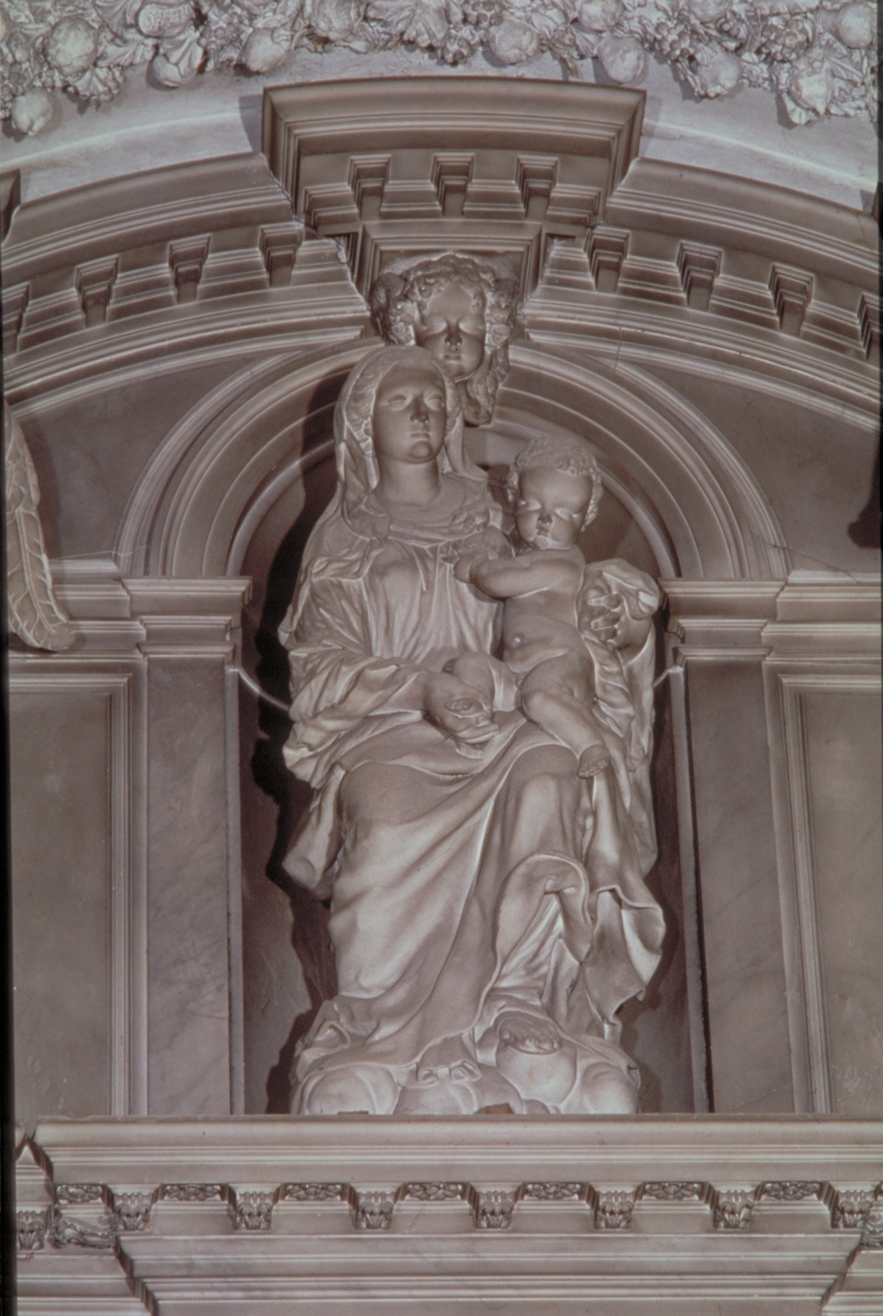 Il complesso statuario presenta la Madonna seduta avente in grembo il Bambino Gesù nudo
