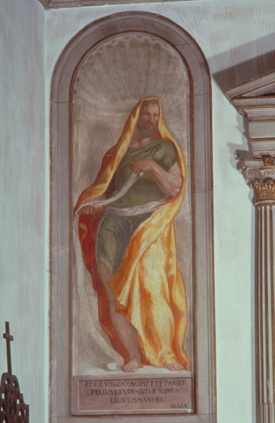 - ISCRIZIONI in basso - ECCE VIRGO CONCIPIET ET PARIET/ FILIUM ET VOCABITUR NOMEN/ EIUS EMMANUEL/ ISAIA - Porta Giuseppe detto Salviati - lettere capitali - a pennello -
