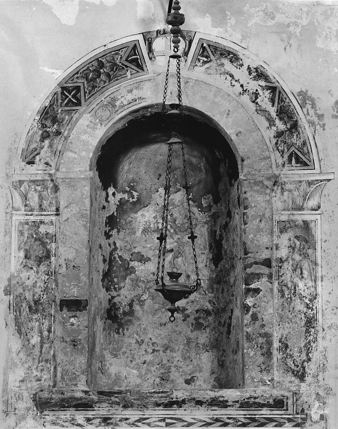 Dipinto decorativo di arco a tutto sesto con motivi geometrici e vegetali
