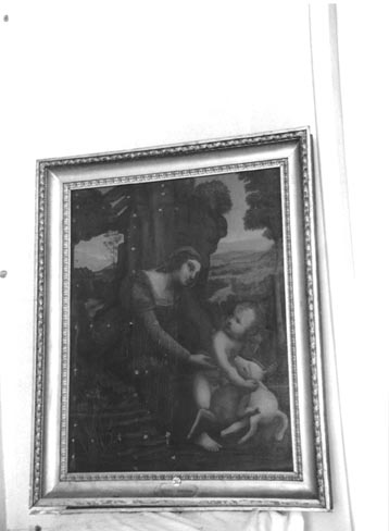 dipinto, olio su tavola, raffigurante Madonna con bambino e agnello
