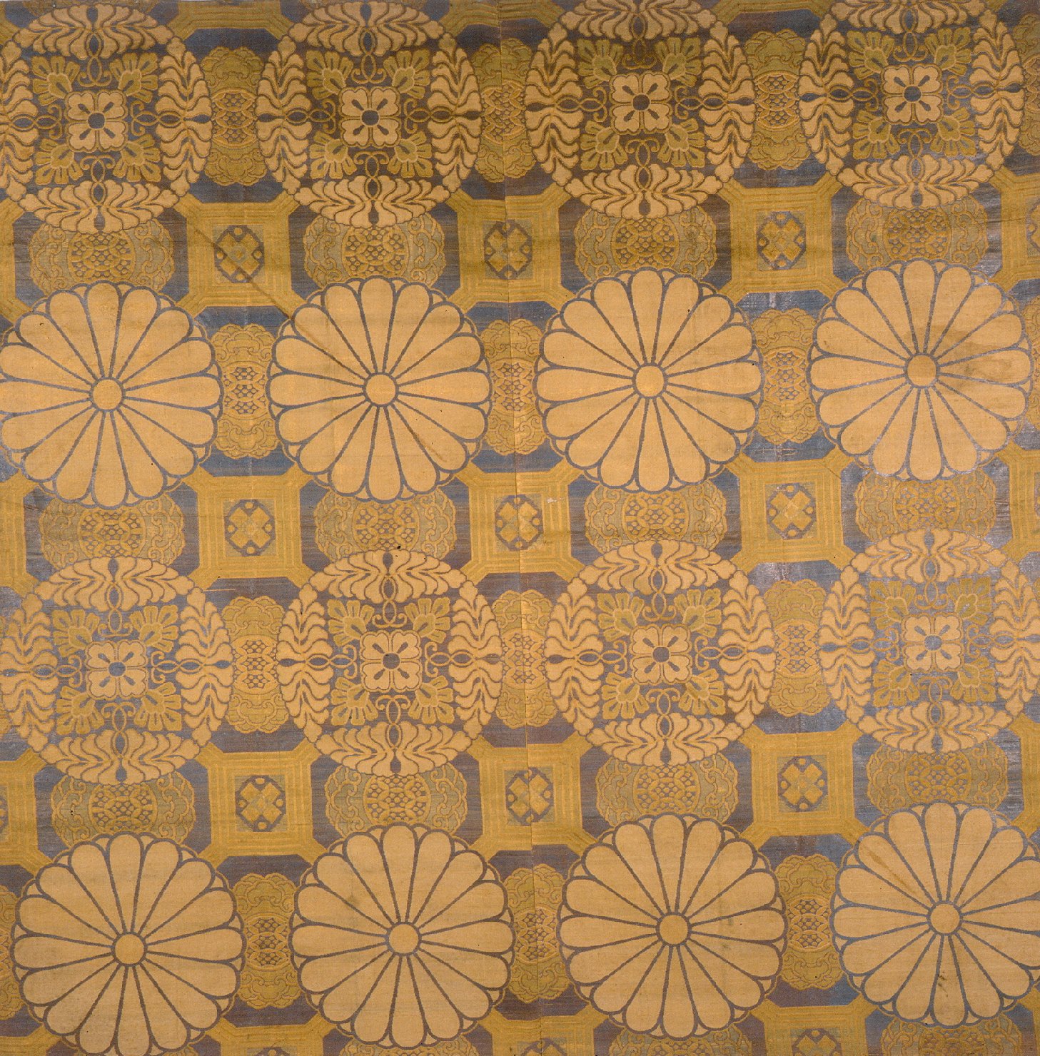 Tovaglietta decorata con motivi multicolori su fondo ocra