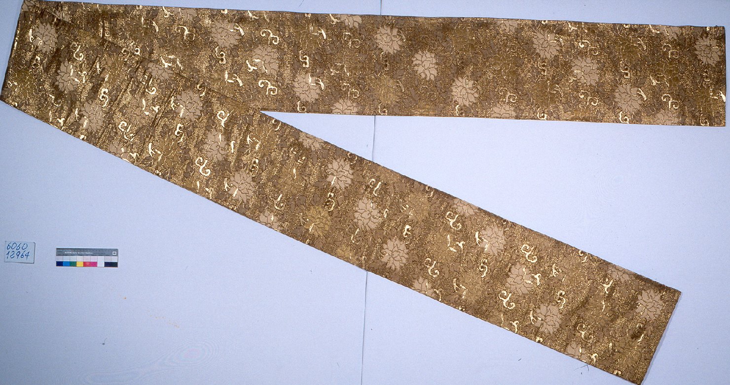 Obi decorato fiori su fondo geometrico su fondo dorato e nocciola