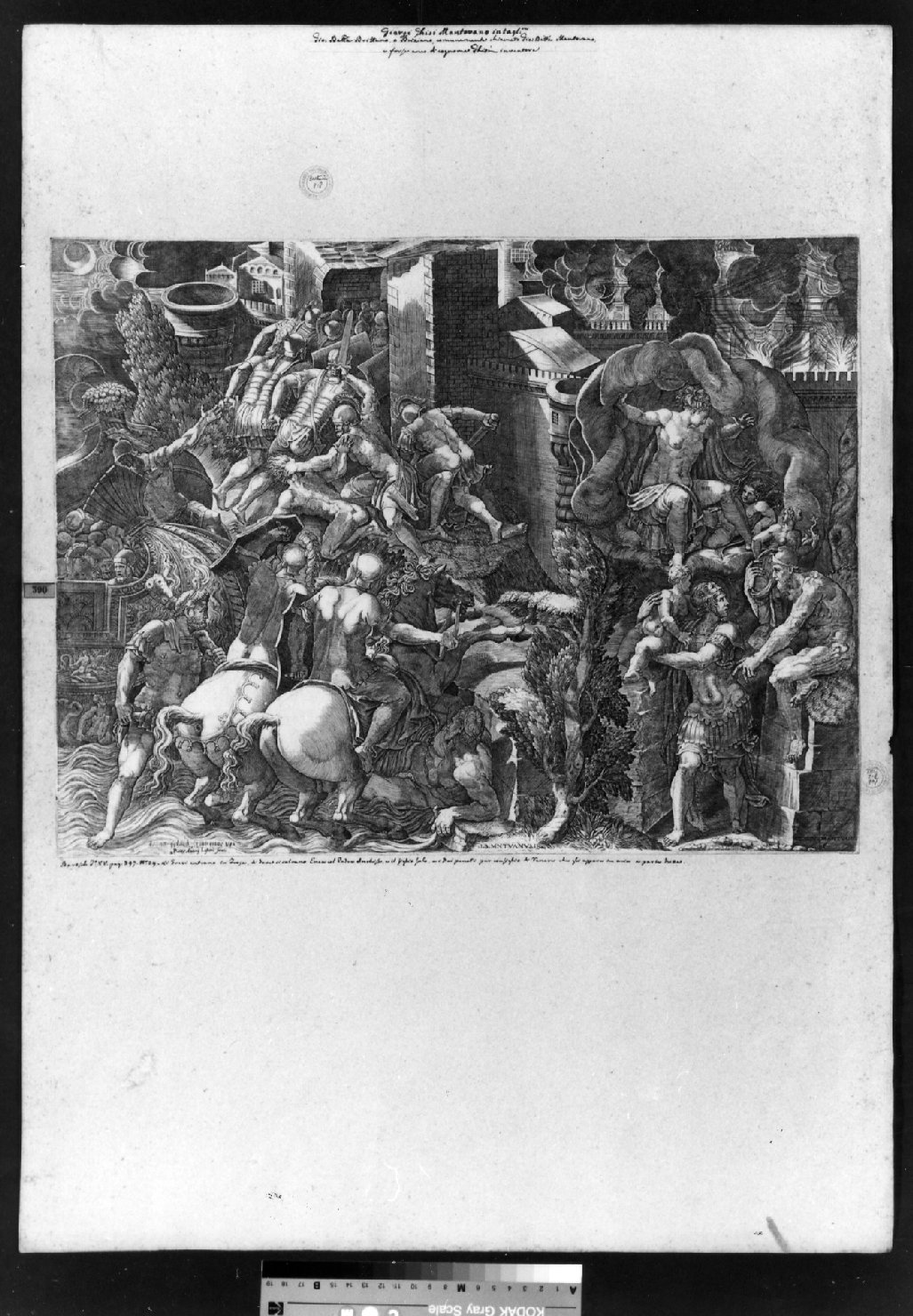 - ISCRIZIONI in alto al centro - Giorgio Ghisi Mantovano intagl:vit / Gio: Batta Brittano, o Briziano, comunemente chiamato Gio: Batta Mantovano, / e forse anco di cognome Ghisi inventore - corsivo - a penna -
