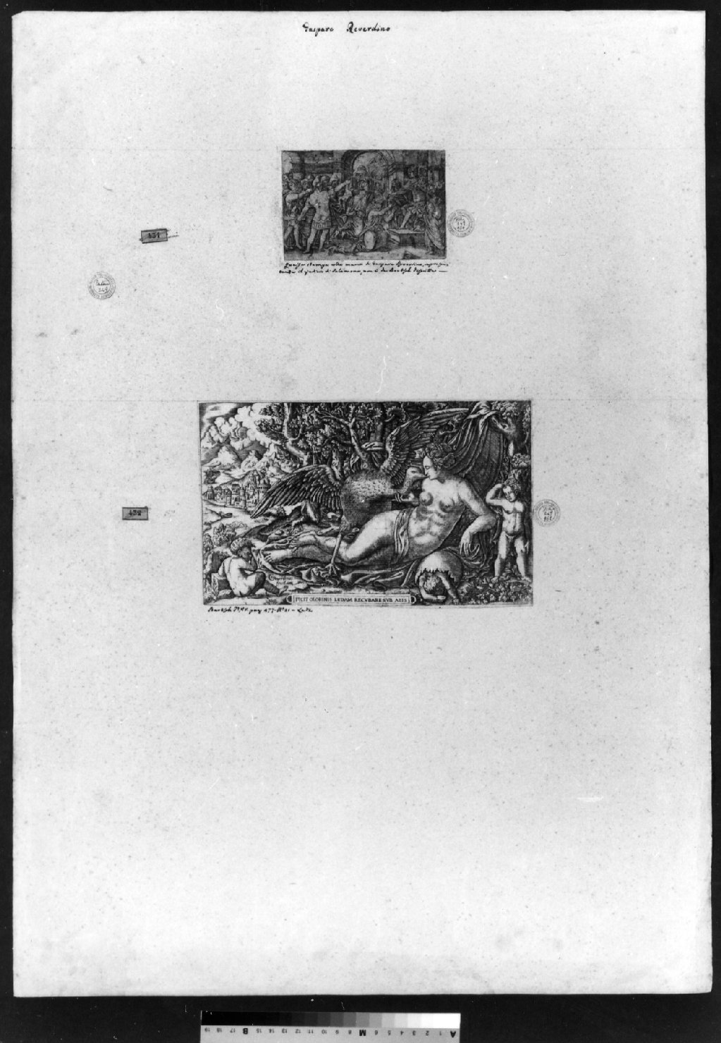 - NOTIZIE STORICO CRITICHE Sul cartone sono incollate le stampe nn. 960-961. A sin. delle stampe è applicato un bollino rettangolare azzurro con impresso il vecchio numero d'inventario (451-452) barrato a matita rossa