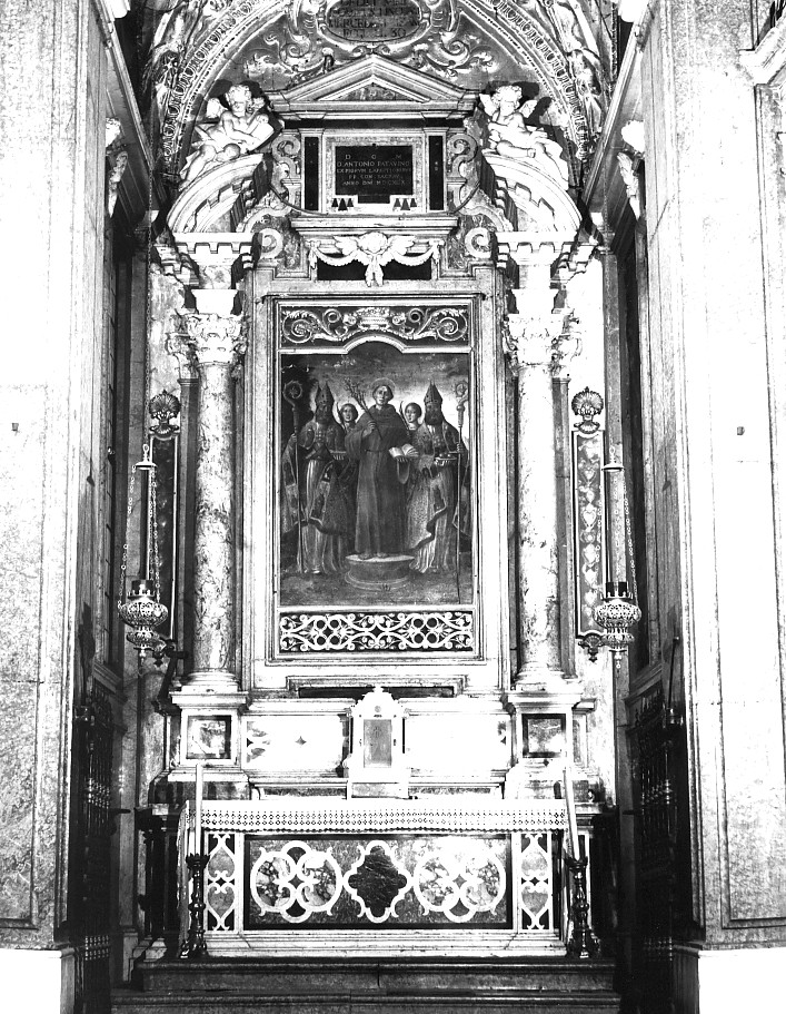 - ISCRIZIONI D.O.M./ D.ANTONIO PATAVINO/ EX PIORVM LARGITIONIBVS/ PP.CON.SACRAV./ ANNO DNI M.D.CXLIX -