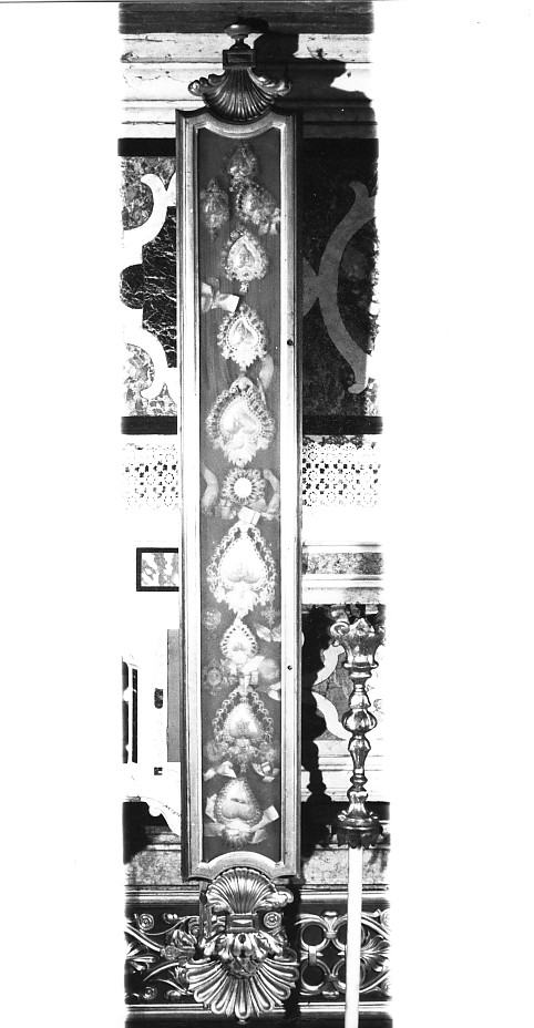 Si tratta di due oggetti disposti simmetricamente a fianco dell'altare, contenenti ex-voto, in legno laccato a finto oro, con decorazioni terminali a palmizio