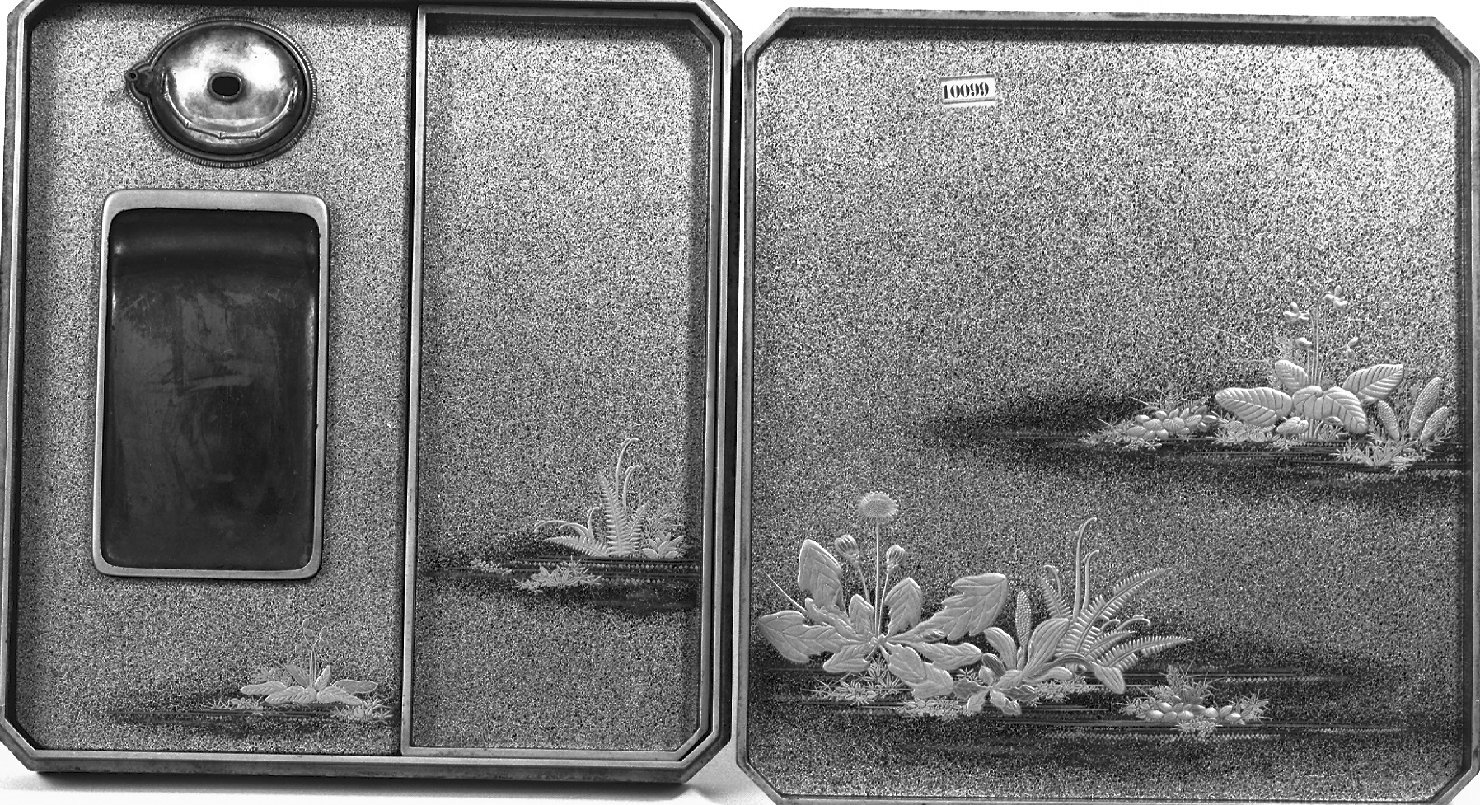 Scatola per scrittura (suzuri bako). Decorazione con ramo fiorito e pianta