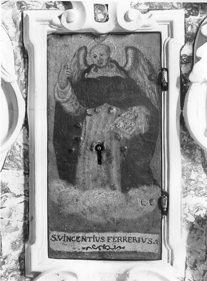 Personaggi: San Vincenzo Ferrer. Attributi: (San Vincenzo Ferrer) ali; libro