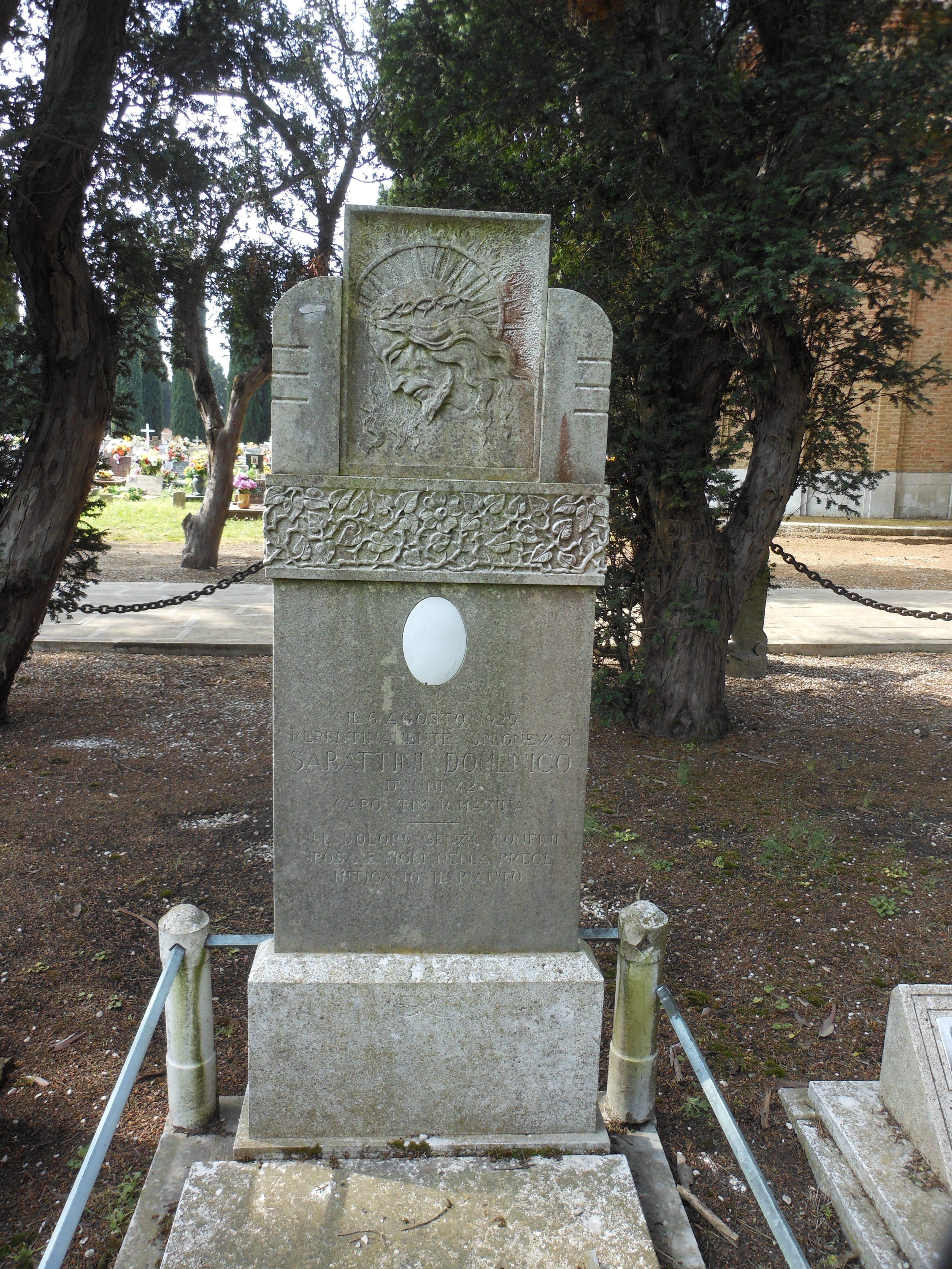 - ISCRIZIONI centrale - IL 6 AGOSTO 1929 / REPENTINAMENTE SPEGNEVASI / SABATTINI DOMENICO / D'ANNI 42 / CPO TIM. R. MARINA / NEL DOLORE SENZA CONFINI / SPOSA E FIGLI NELLA PRECE / MITIGANO IL PIANTO - lettere capitali e numeri arabi -