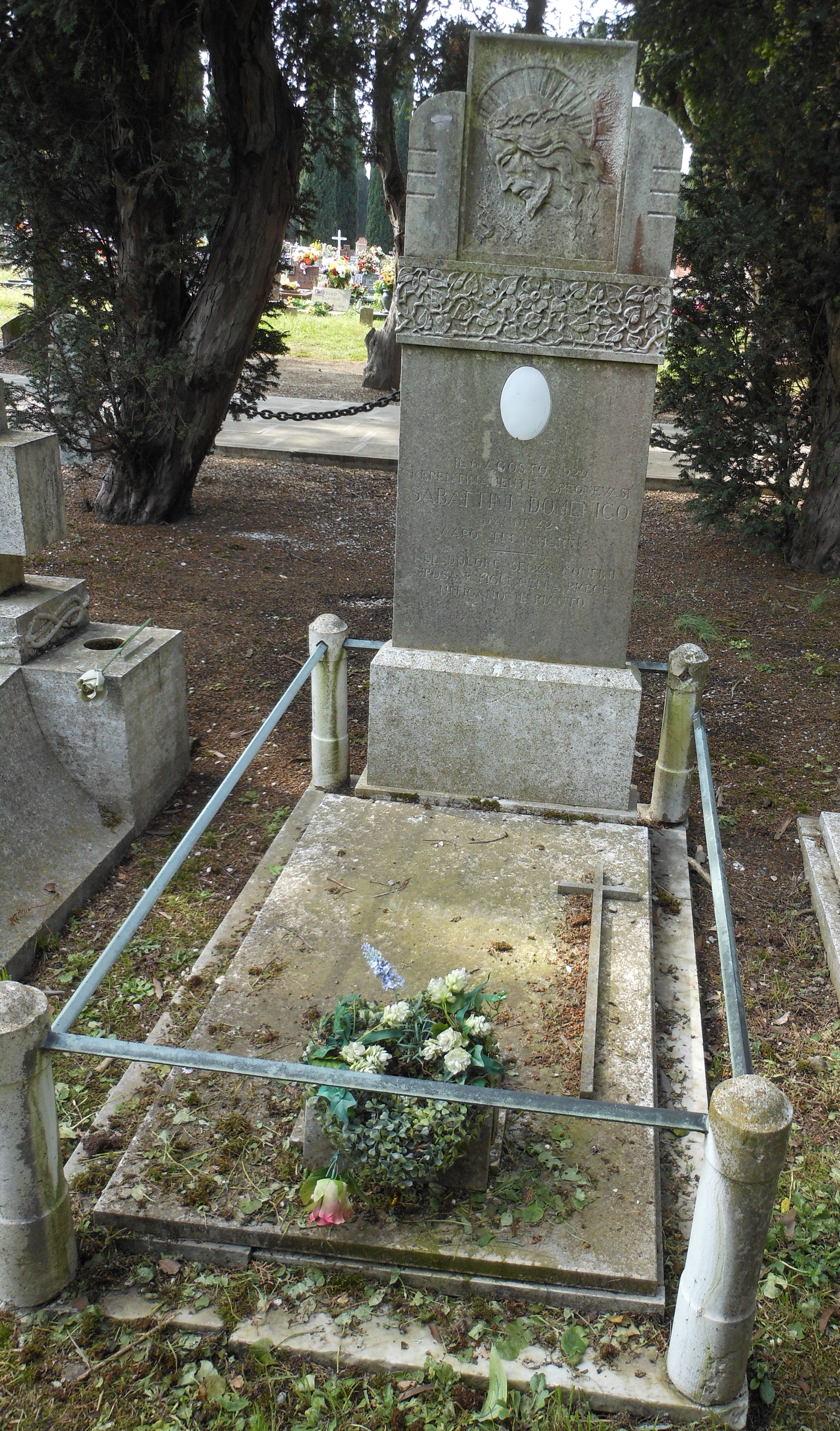Tomba costituita da una lastra che presenta una croce latina a rilievo, e da una lapide che riporta nella parte inferiore, inciso, il simbolo dell'infinito; sotto la dedica commemorativa e la foto del soldato. Nella parte superiore, dopo una cornice a rilievo con rami di spine e rose, è un riquadro con il profilo del volto di Cristo addolorato. La tomba è delimitata da quattro pilastrini collegati tra loro da sbarre in ferro