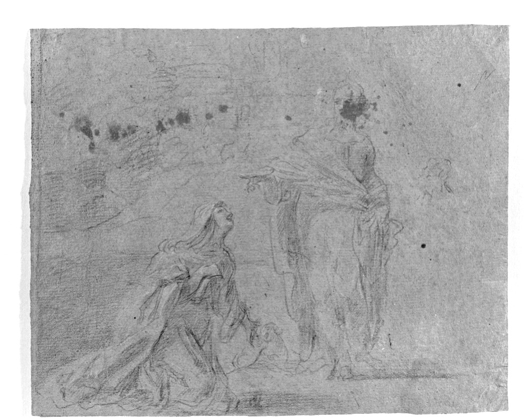 - NOTIZIE STORICO CRITICHE La composizione è basata sull'analogo soggetto di Annibale Carracci, sviluppato però in verticale già a Roma (Cappella di Palazzo Farnese); mentre i due studi di mano nel verso si riferiscono a quella del Cristo che indica la Cananea. Una proposta attributiva a favore di Domenico Maria Viani, solo di recente studiato ( Miller 1964; Roli 1977 ) è basata, dubitativamente, dal confronto con un disegno sicuro del Maestro (Cortona 1985, n. 25, riprodotto) relativo al dipinto Cristo rimprovera i negatori dell'Eucaristia in collezione Bertozzi-Bagnini a Bologna ( Colli 1977, p. 100, Fig. 154b)