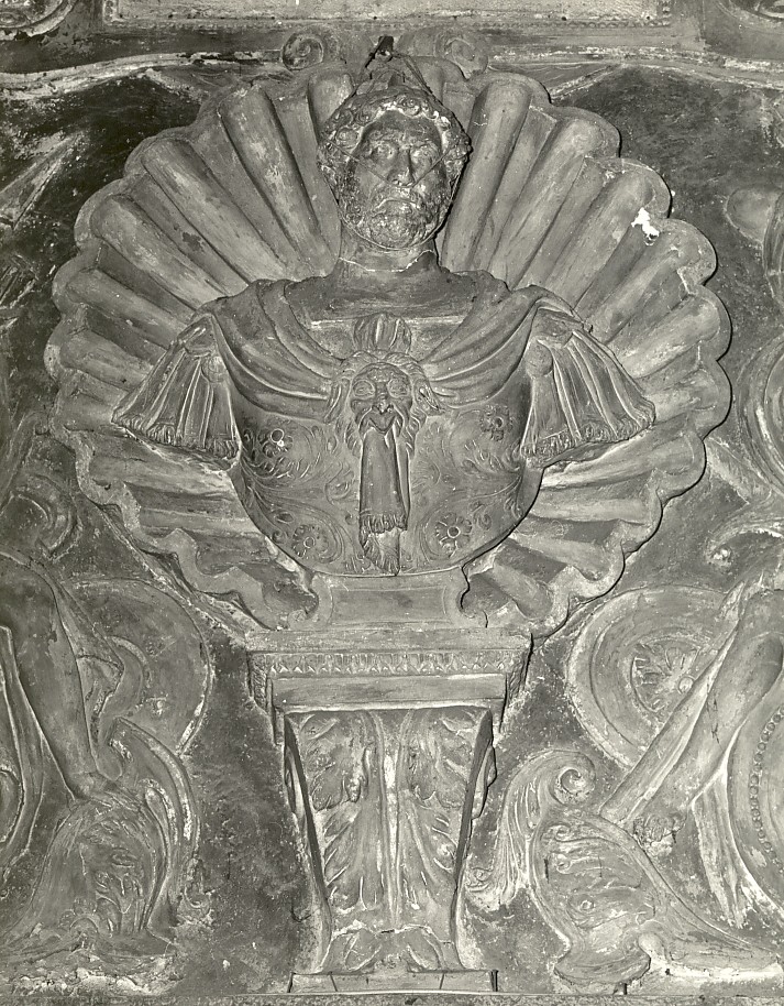 - NOTIZIE STORICO CRITICHE Il busto in esame ricorda, nel trattamento della barba e dei capelli, la statua di Lorenzo Rubini, situata sul poggio sinistro del pronao di nord-est della Rotonda (1568 ca.). I dodici Cesari non corrispondono alla sequenza svetoniana; presumibilmente la scelta di ciascun imperatore venne determinata dalle intenzioni autocelebrative del committente Montano IV, il quale, come sembra di poter desumere dalla ricorrenza di taluni soggetti negli apparati decorativi del palazzo, volle alludere, attraverso simboli precisi alla sua nobiltà; glorificata dalla "virtus militaresca", essa è sostenuta e legittimata, in riferimento all'antichità come tradizione storica, dalla cultura. La vicinanza stilistica di alcuni busti Barbaran a quelli della sala ottagona di Palazzo Thiene ne conferma la matrice vittoriesca; difficile poterli, invece attribuire a Lorenzo o a Agostino. Lo Zorzi (1965) ne data l'esecuzione agli anni successivi al 1574; tale ipotesi indurrebbe ad assegnarli al figlio, il quale lavorò forse sui calchi dello zio Alessandro, che infatti gli lascerà in eredità, con il testamento del 1584, i suoi "dissegni et modelli" (Zorzi, 1965, p. 83)