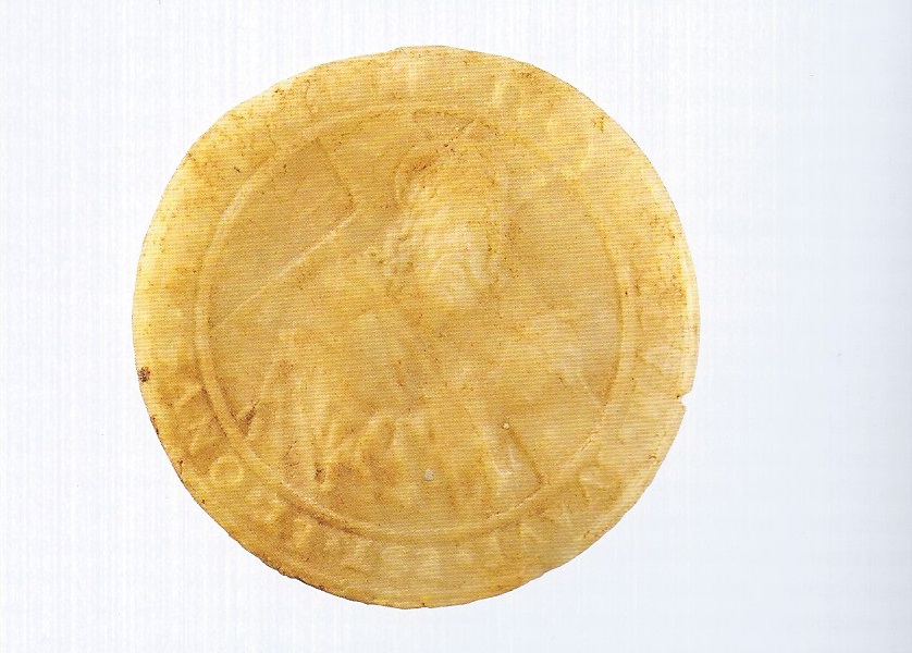 medaglione rotondo di cera con decori impressi su entrambi i lati