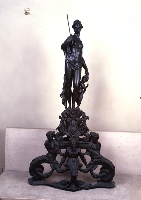 - NOTIZIE STORICO CRITICHE In pendant con l'alare raffigurante Adone o Meleagro Br. 4. Provenienza: Padova, coll. monastero dei canonici regolari lateranensi di San Giovanni di Verdara, fino al 1783 (Casoria Salbego 1983); trasferito nella Biblioteca Marciana; quindi nel Reale Museo Archeologico di Venezia con sede in Palazzo Ducale, ca. 1895; depositato presso la Galleria Giorgio Franchetti alla Ca’ d’Oro, ca. 1926 (Fogolari, Nebbia, Moschini 1929). Esemplari simili si trovano nei musei di: La Spezia, Museo Civico Amedeo Lia; Padova, Musei Civici; Roma, Museo Nazionale del Palazzo di Venezia; Londra, Victoria and Albert Museum; San Pietroburgo, Ermitage; Vienna, Kunsthistorisches Museum; Venezia, Ca' d'Oro (altro esemplare, senza la base, Br. 11). La tipologia degli alari figurati, che rientra nel genere degli strumenti da camino, ha una peculiare funzione pratica, e gode di particolare fortuna nel XVI secolo; sul finire del secolo, essa si caratterizza per l’esuberanza decorativa e gode di un’iperbolica diffusione nei palazzi soprattutto veneziani sia pubblici che privati (V. Avery 2011)