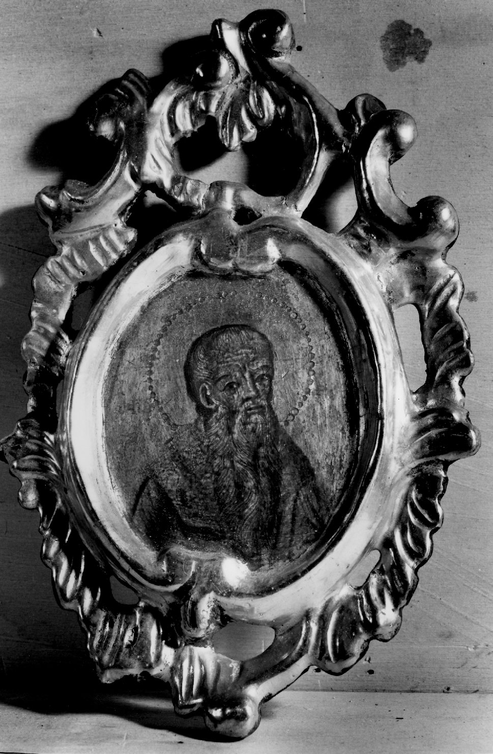 ENTRO UNA TAVOLA OVALE CONTORNATA DA UNA RICCA CORNICE VI E' RAFFIGURATO SANT' ARSENIO A MEZZO BUSTO, A FOGGIA DI VECCHIO BARBUTO POSTO DI PROFILO DESTRO