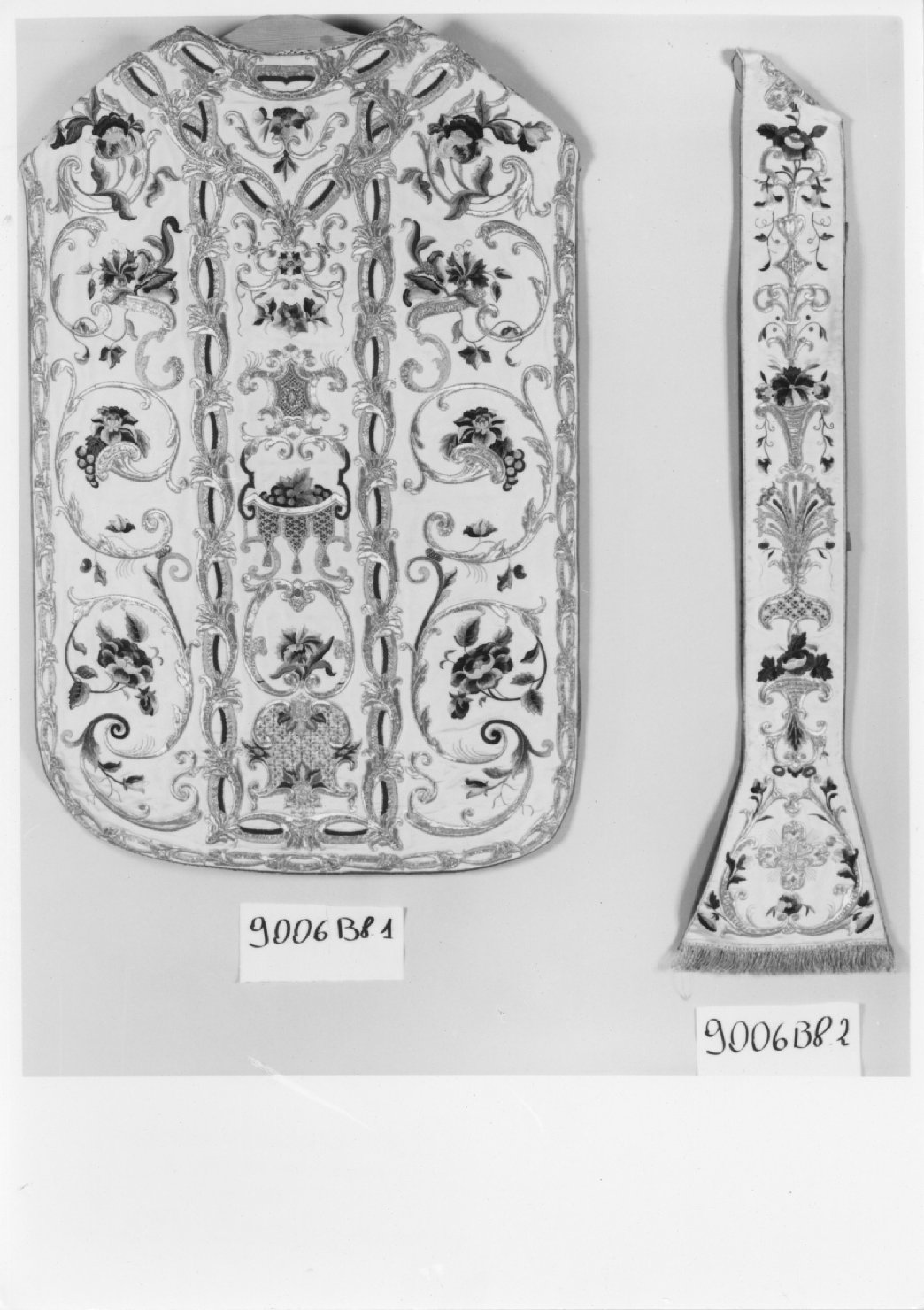 TESSUTO: SETA AVORIO RICAMATA AD INTRECCI E CORNUCOPIE AD A NDAMENTO VERTI CALE