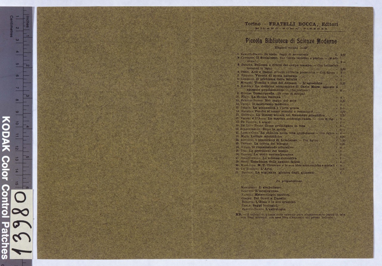 - NOTIZIE STORICO CRITICHE La collana "Piccola Biblioteca di Scienze Moderne" risale al 1897. Mataloni lavora per i Fratelli Bocca tra la fine del XIX e l'inizio del XX sec