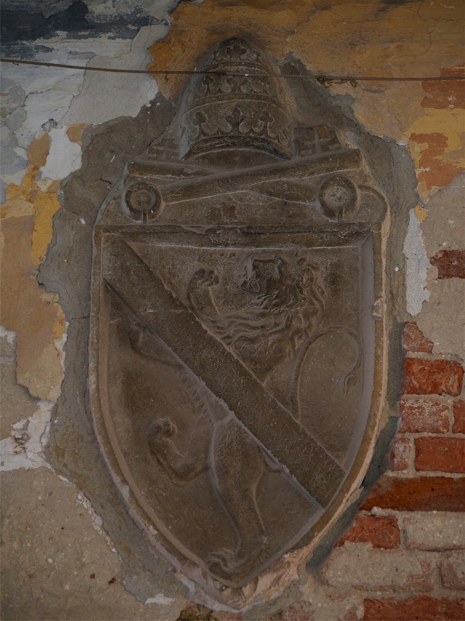 stemma lapideo gotico sovrastato da due chiavi passate in croce di S. Andrea legate e superiore corona di papa