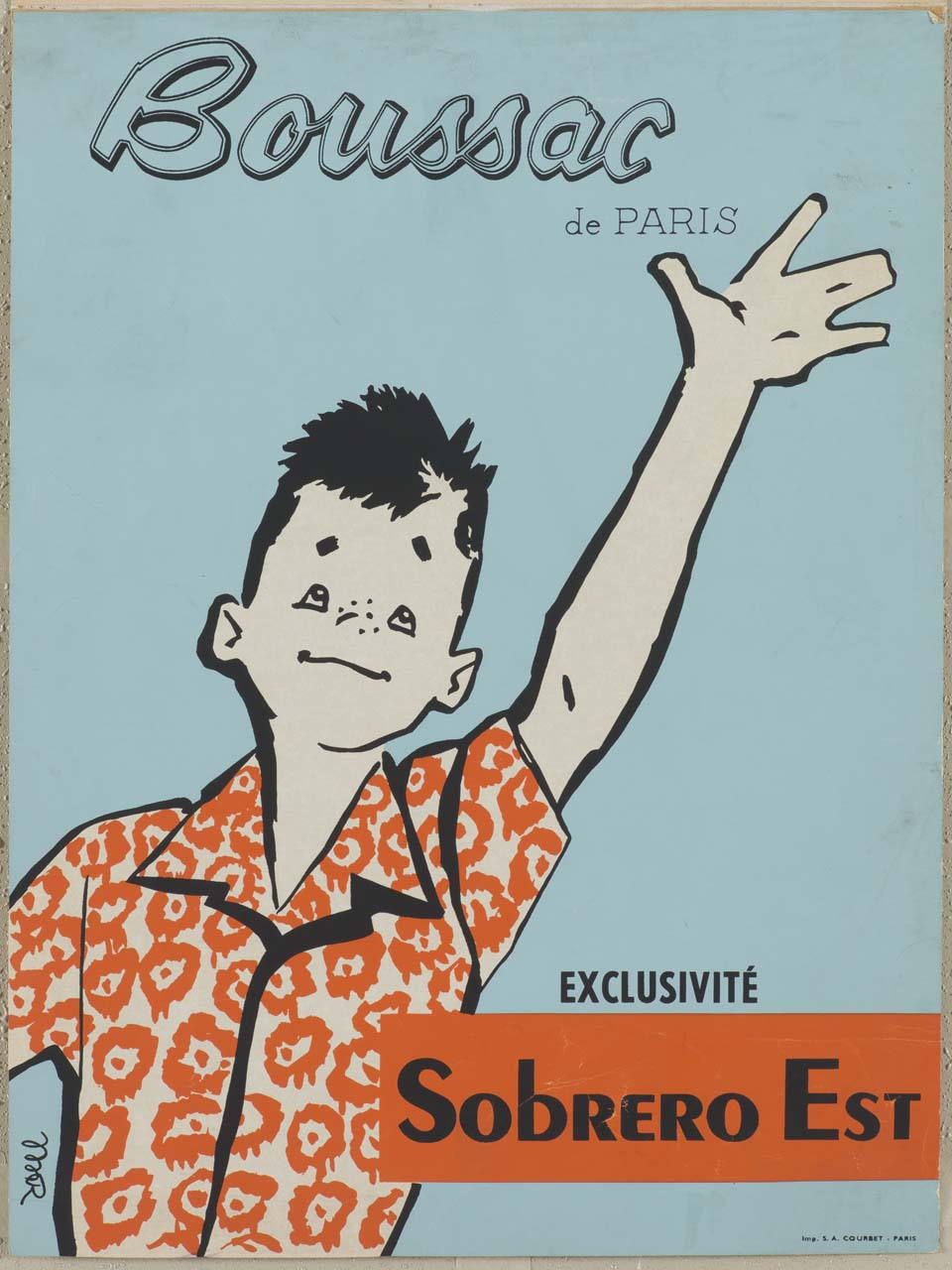 Lettura iconografica: figura maschile; ragazzo. Categoria merceologica/ tipo evento: industria tessile; abbigliamento; camicia. Nomi: Boussac; Sobrero Est. Luoghi: Francia; Paris; Parigi; Torino; Gassino Torinese