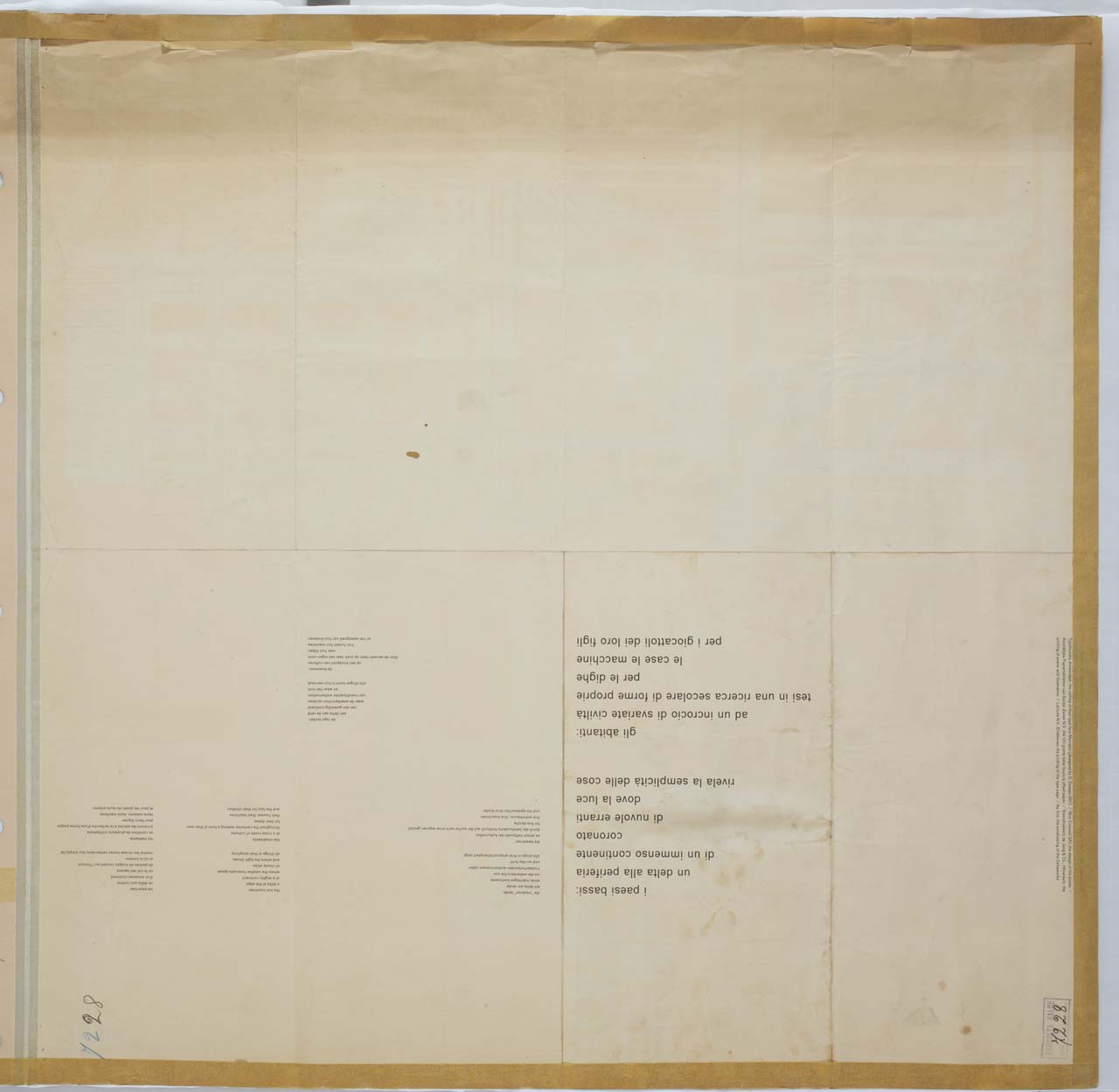 - NOTIZIE STORICO CRITICHE Per la complessa attribuzione delle responsabilità del manifesto, facendo riferimento anche alle ulteriori iscrizioni che si trovano al verso, si evince una responsabilità diversificata per l'immagine e per il titolo. Alle principali indicazioni che si trovano al recto del manifesto, che indicano Ap Sok come autore della parte figurata, Wim Crouwel (della ditta GKf) come autore del progetto grafico generale e de Jong & Co. come editore responsabile per la stampa litografica a Hilvesum, vanno aggiunti: Dick Dooijes, pure della GKf, per il progetto strettamente tipografico e la scelta dei caratteri, la Koninklijke Papierfabrieken di Gelden Zonen N.V. (Fabbrica reale di carta) per la stampa in offset e la Lecturis N.V. di Eindhoven per la stampa dell'iscrizione (la sigla N.V., da sciogliersi in Naamloze Vennootschap, corrisponde in linea di massima alla nostra S.p.A.). Il manifesto pubblicizza la sezione olandese inserita all'interno della XII Triennale di Milano, tenutasi appunto nel 1960, dove il Paese presentò una selezione dei propri oggetti di design industriale, anche in riferimento al Piano Delta (in nederlandese Deltawerken, in inglese Deltaworks, come riportato sul retro), il progetto ideato dopo l’inondazione causata dal Mare del Nord nel 1953 nei Paesi Bassi (i lavori, avviati nel 1958, sono proseguiti fino a epoche recenti, nel 1997)