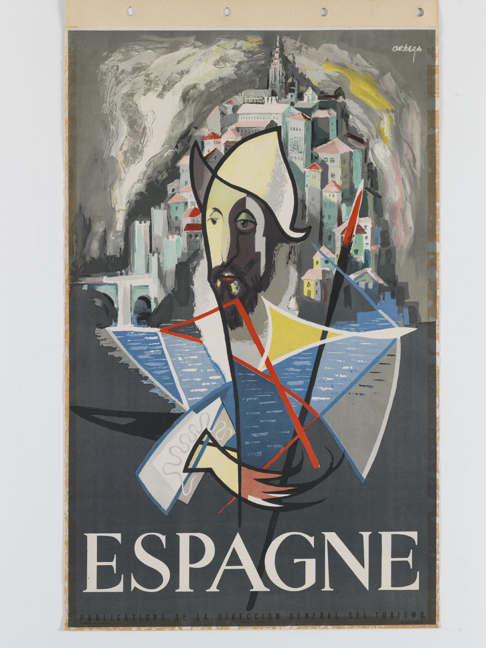 Lettura iconografica: figura maschile; ritratto; Don Chisciotte; villaggio. Categoria merceologica/ tipo evento: turismo; enti di promozione turistica. Nomi: Direccion General del Turismo. Luoghi: Espagne; Spagna; Madrid