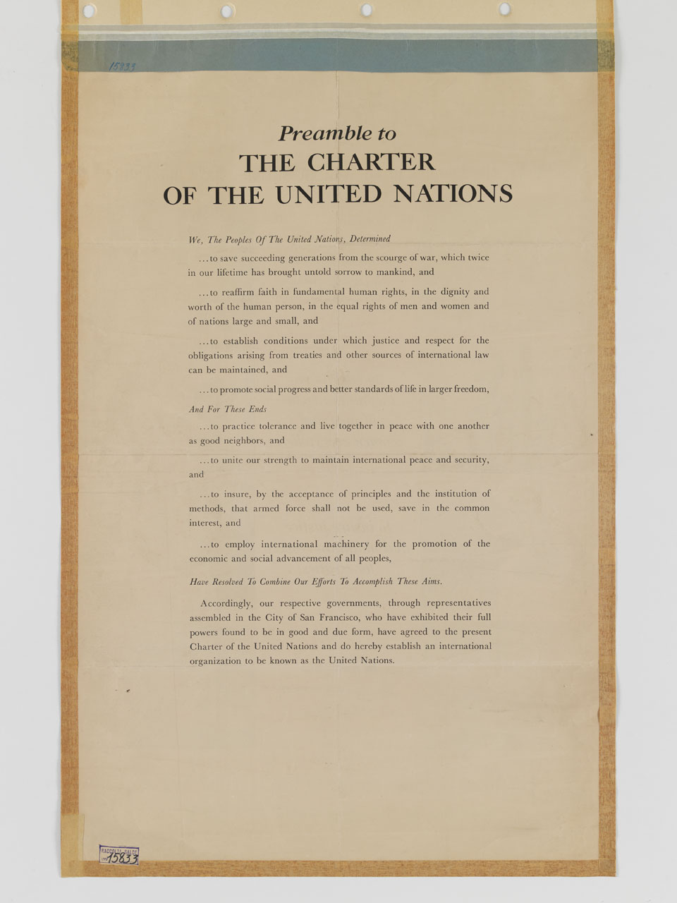 - NOTIZIE STORICO CRITICHE La Carta (o Statuto) delle Nazioni Unite è il trattato istitutivo di tale organizzazione, adottato dalla Conferenza di San Francisco il 26 giugno 1945. Un manifesto uguale a questo è conservato presso la Hennepin County Library, Minnetonka, Minnesota (http://www.hclib.org/pub/search/wwiiposters/Action.cfm?PID=MPW00186&showComments=Y)