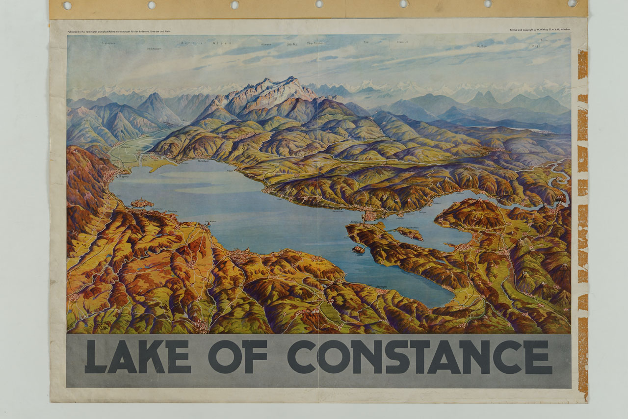Lettura iconografica: carta geografica; lago; fiume; montagne; valli; paesi; villaggi; assi viari. Categoria merceologica/ tipo evento: informazione e comunicazione; editoria; carta geografica; turismo; lago. Nomi: Dampfschiffahrts-Verwaltungen für den Bodensee, Untersee und Rhein. Luoghi: Austria; Svizzera; Germania; Lake of Constance; Lago di Costanza