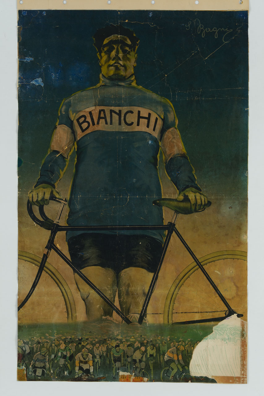 - NOTIZIE STORICO CRITICHE Si può ipotizzare di datare questo manifesto tra il 1929 e il 1931, in quanto in quel periodo Gaetano Belloni, che si propone di identificare nel ciclista ritratto in questo manifesto, correva per la casa milanese di produzione di biciclette Bianchi